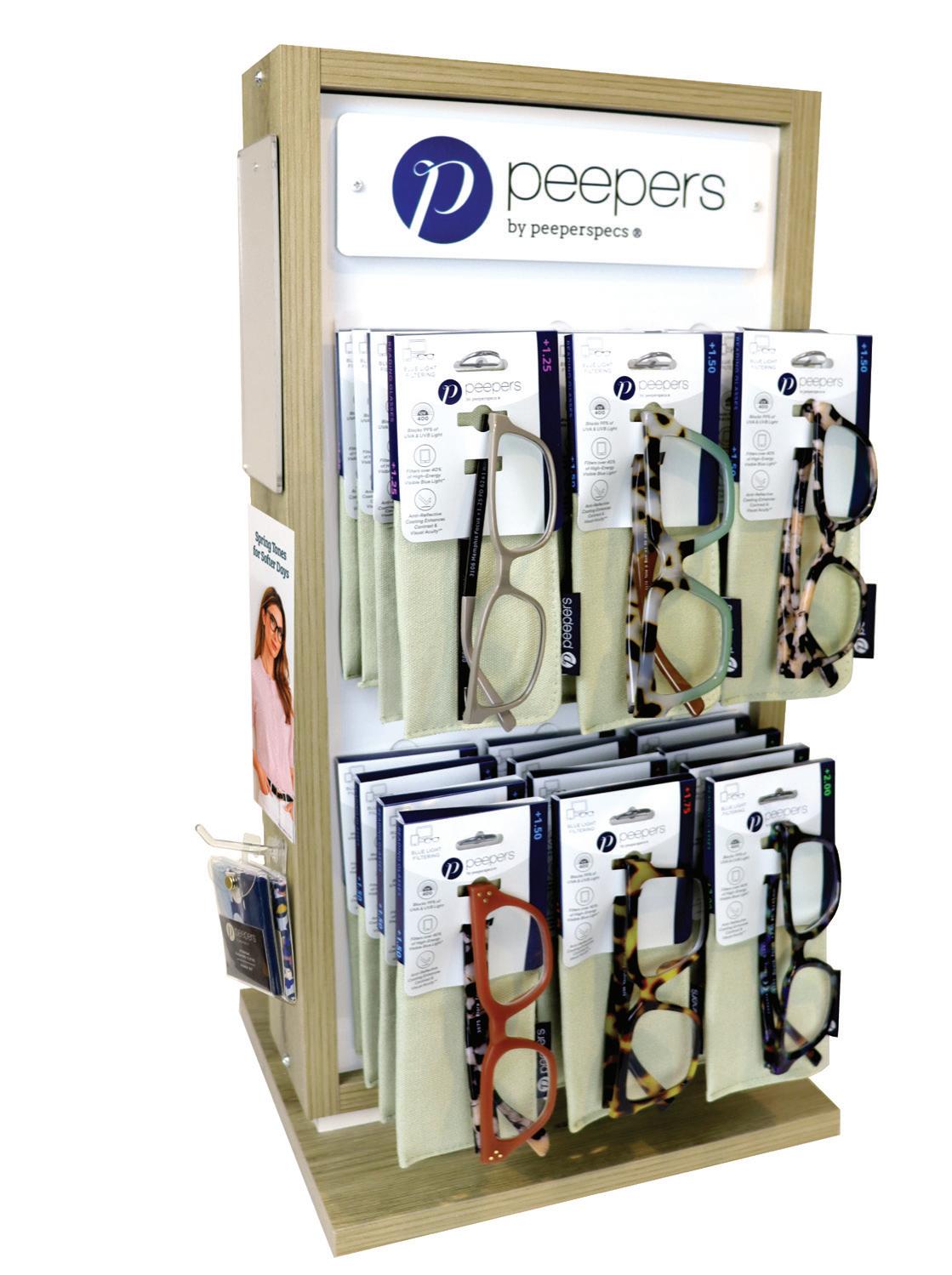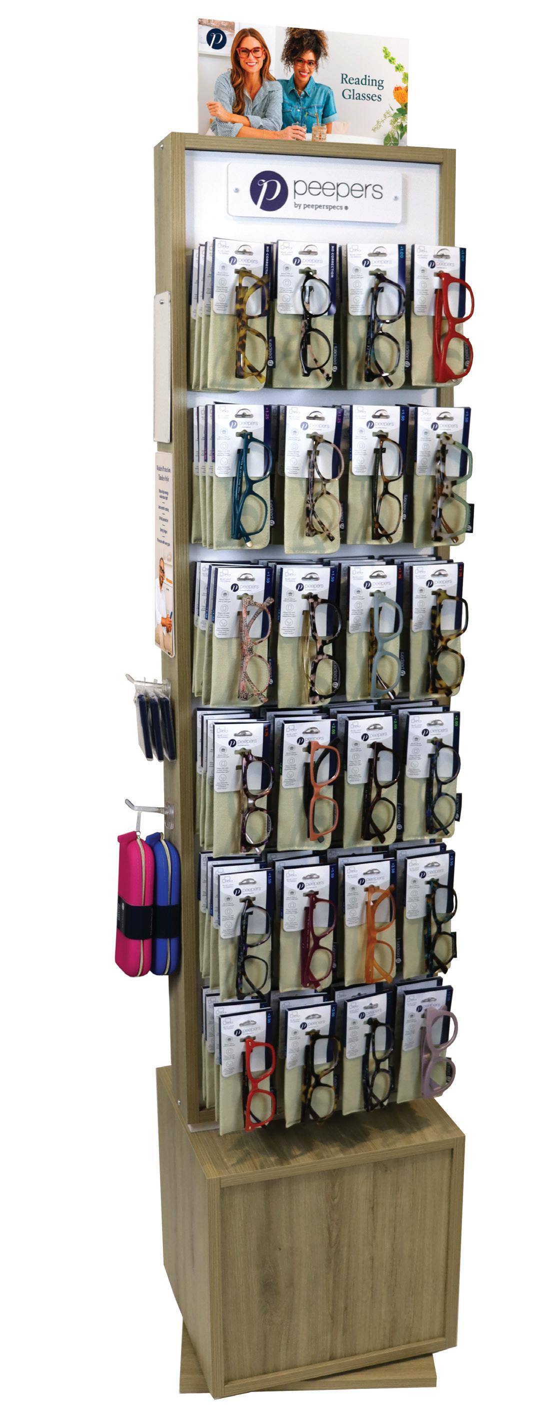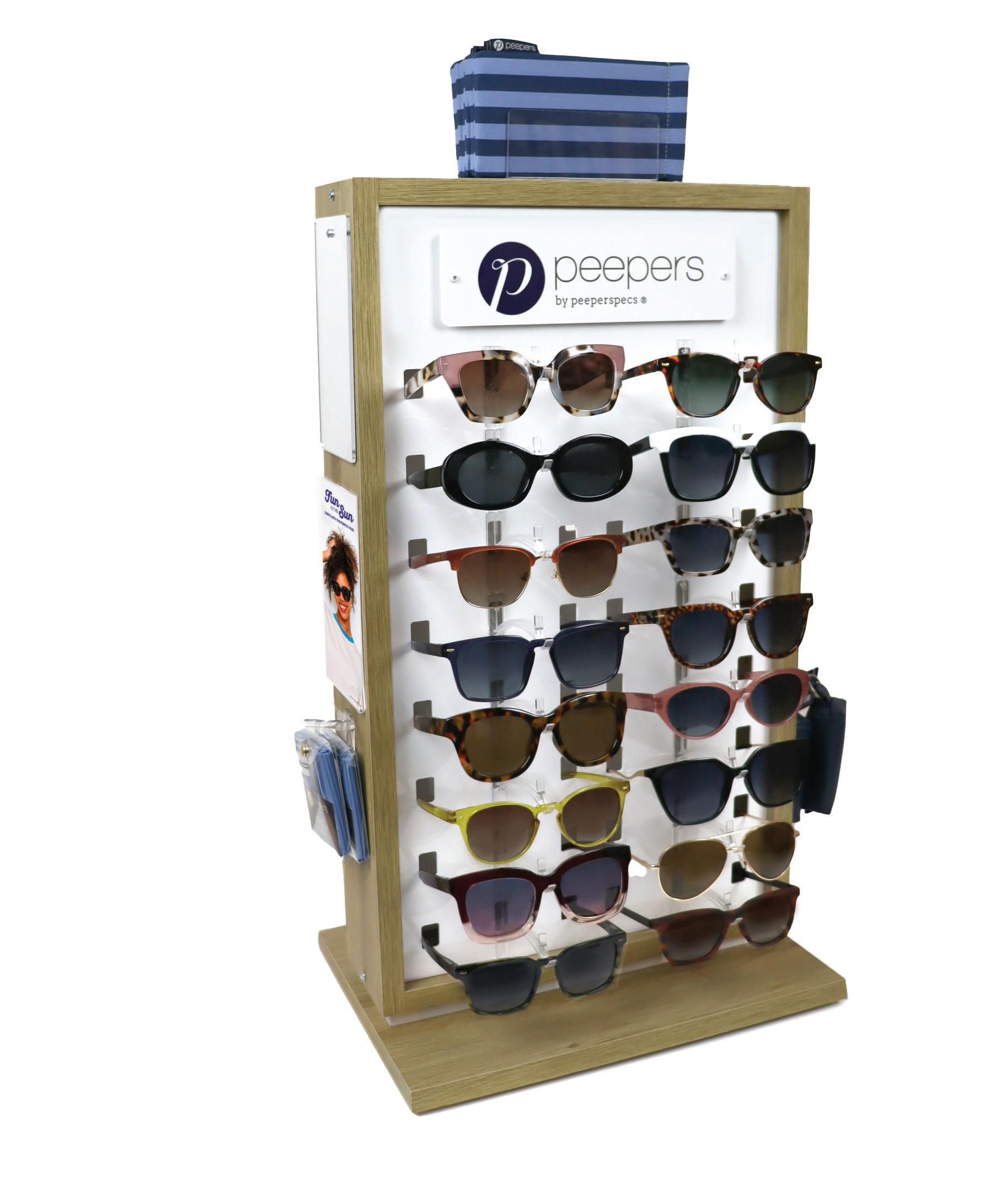 We offer our Reading and Blue Light product in hanging packaging that is designed to hang on your new Peepers display. All Sun product is available as open stock. Existing customers who already carry Peepers open stock Reading and Blue Light styles will be grandfathered in to the program and will still be able to offer open stock Reading and Blue Light product.