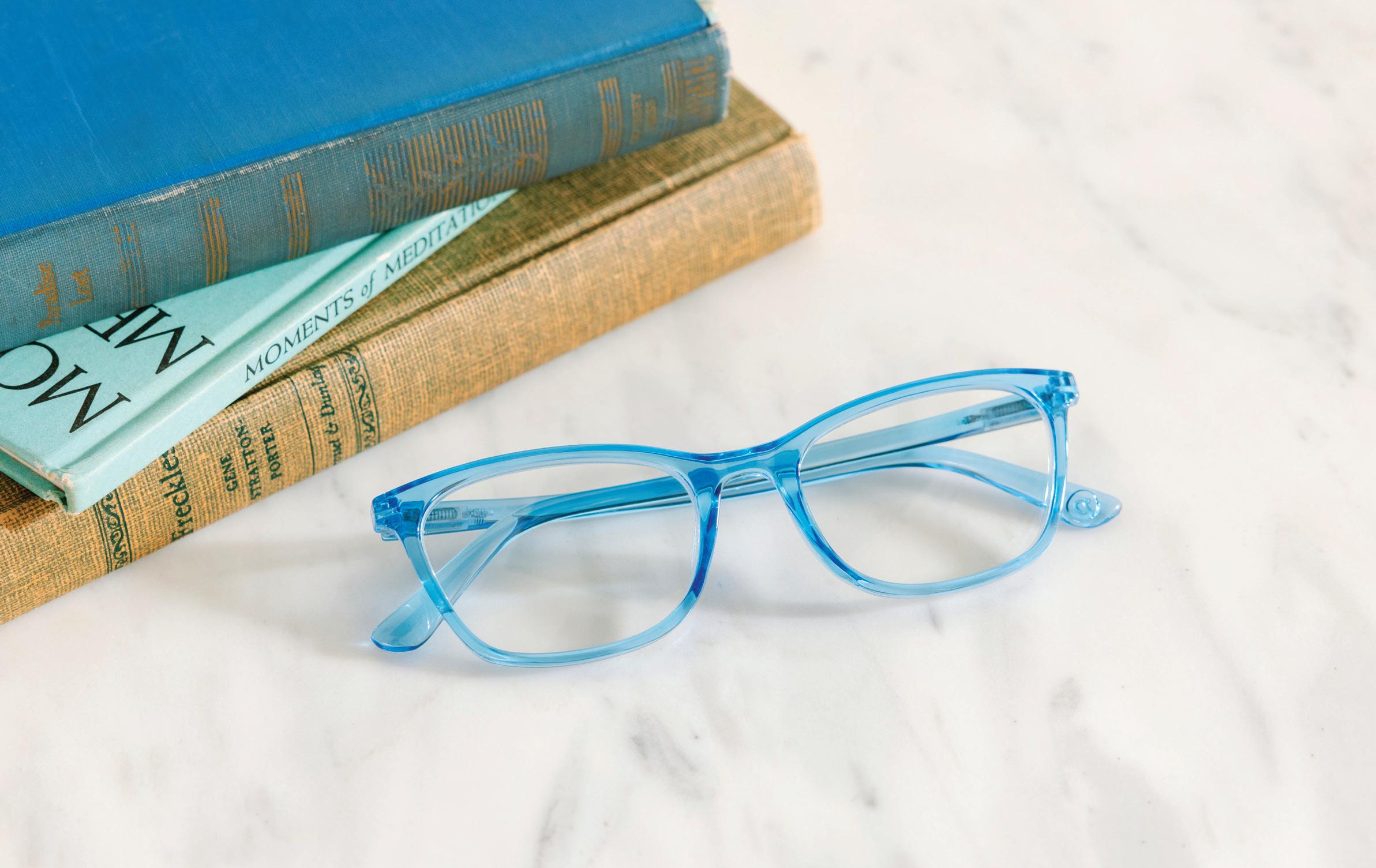 Blue light filtering lenses available in +1.00 thru +3.00 strengths