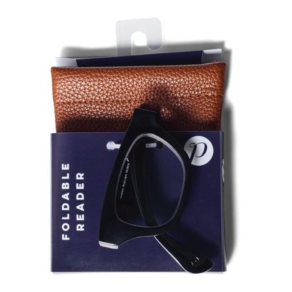 Designed for compact carrying, this foldable reader is paired with a faux leather case to stash in your pocket, bag, or briefcase. Available in +1.50, +2.00, +2.50 strengths.