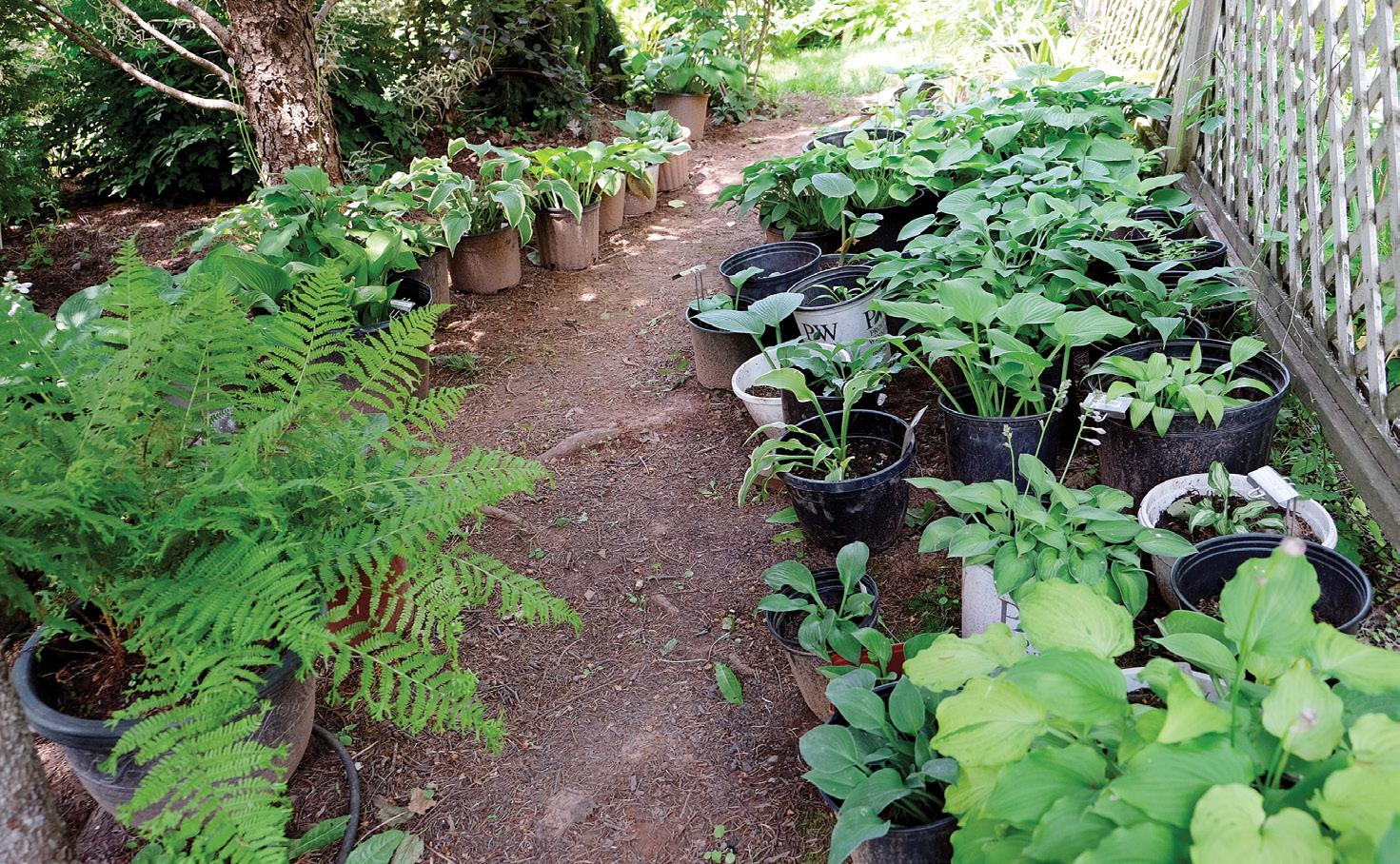 Around the back is a series of brick pathways between lush plantings of hostas, yes, but every kind of plant that will grow on PEI, and surely some that usually won’t grow here. Trees and shrubs give a dappled shade that provides a sunny spot for a daylily and a yellow hosta here, a shady spot for a brunnera and blue hosta there. You can imagine garden parties happen ing in this area long ago, before so much ground was given up to vegeta tion. Today it is a plant enthusiast’s wonderland. p