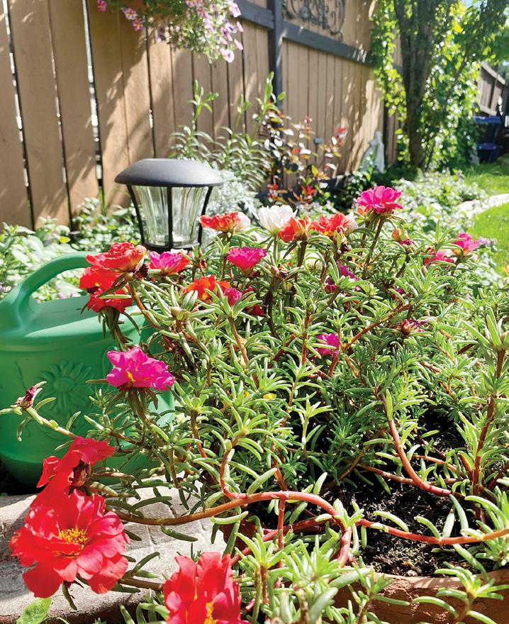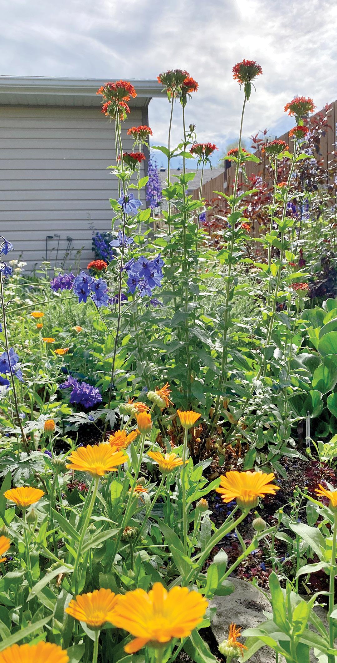 As someone who grew up on a bustling farm, the idea that “you can take the girl out from the farm but never the farm out of the girl” was impossible to skip! In 1975, with my husband, Frank, we purchased our new home in South Edmonton. So, with no surprise, we chose a fair-sized lot and this became the makings of my “little piece of country”. I recall riding in the back of a truck bringing home a sizeable assortment of birch trees and evergreens. This marked the start of filling the blank landscape with trees. Over the years these have been replaced with other species of trees, ever changing shrubs, perennial and potted plants.