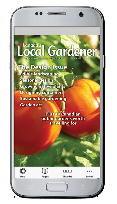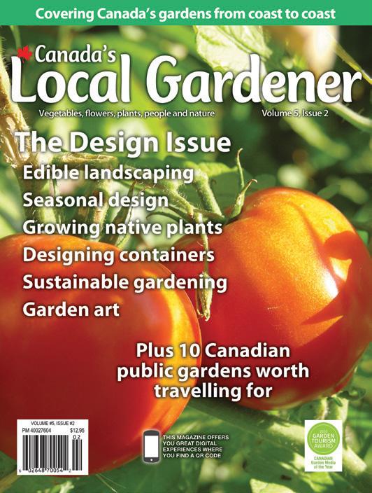Canada’s LoCaL Gardener is published four times annually by Pegasus Publications Inc. It is regularly available to purchase at newsstands and retail locations throughout Canada or by subscription. Visa, MasterCard and american express accepted. Publisher buys all editorial rights and reserves the right to republish any material purchased. reproduction in whole or in part is prohibited without permission in writing from the publisher.