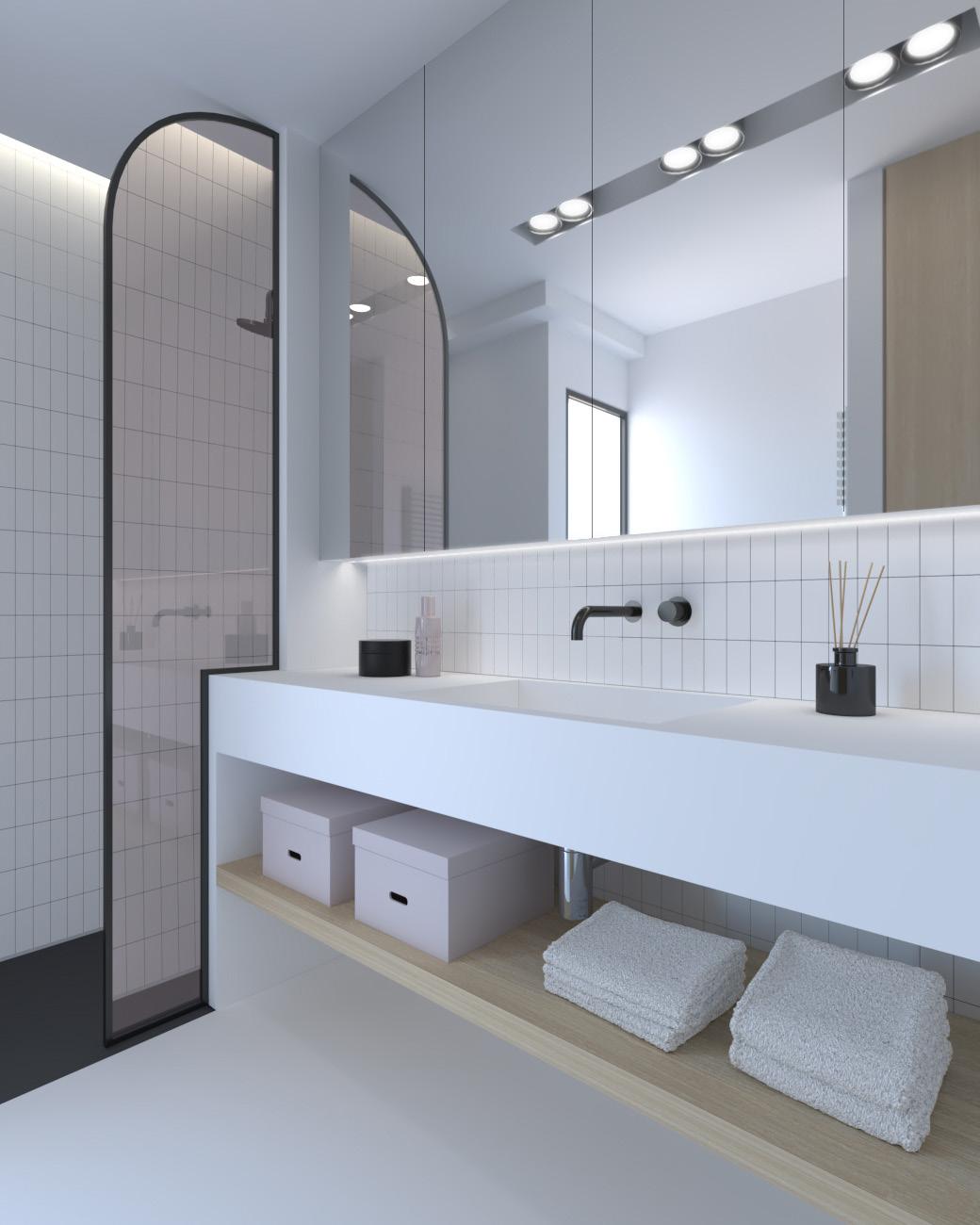 9 INCLINATION 1.5% 1.30 1.42 2 1 4 3 SCALE : 1 20 FIN 08 FLOOR TYPE FAUX TADELAKT BATHROOM PLAN C. L. C. L. 0.60 0.70 0.60 0.03 0.40 0.90 0.43 0.07 0.75 1.00 C. L. 0.10 1.20 0.37 0.37 0.65 C. L. 0.70 FLUTTED GLASS FIN 02 D.4.1 0.16 0.15 0.07 0.60 0.07 DOOR STOP HDW 03 WALL-HUNG TOILET SAN 01 FLUSH PLATE SAN 02 TOILET BRUSH SAN 09 PAPER HOLDER SAN 07 BATHROOM WASTE BIN SAN 08 FLOOR DRAIN SAN 06 WASHBASIN TAP WALL MOUNTED SAN 05 LINEAR DRAIN SAN 15 SHOWER SET SAN 16 GLASS PARTITION FIN 05 D.3.5 MIRROR IN RECESS 1 CM DEPTH FIN 04 CONCEALED CISTERN SAN 03 METAL SHELF CF 09 D.3.2 WASHBASIN CF 08 D.3.1 WALL FINISH FIN 08 SHAFT 0.25 OVERHEAD SHOWER SAN 09 ROBE HOOK SAN 11 WALL RECESS D.3.3 0.40 C. L. ELEVATION 3 SCALE : 1 : 20 DOOR HANDLE HDW 02 TOILET BRUSH SAN 09 WALL-HUNG TOILET SAN 01 FCL +2.20m FALSE CEILING LEVEL FLUSH PLATE SAN 02 BATHROOM WASTE BIN SAN 08 FFL ±0.00m FINISHED FLOOR LEVEL MIRROR IN RECESS FIN 04 WATERPROOF ELECTRICAL OUTLET WATERPROOF CEILING SPOT FCL +2.25m FALSE CEILING RECESS CONCEALED CISTERN SAN 03 DOOR FINISH FIN 12 DOOR FINISH FIN 13 WASHBASIN TAP WALL MOUNTED SAN 05 0.20 FIN 08 WALL FINISH METAL FIN 06 LED LIGHT RECESS D.3.4 0.90 0.40 0.77 1.00 1.10 WASHBASIN CF 08 D.3.1 ELEVATION 4 SCALE 1 20 ROBE HOOK SAN 11 1.80 FLUSH PLATE SAN 02 PAPER HOLDER SAN 07 FCL +2.20m FALSE CEILING LEVEL WALL-HUNG TOILET SAN 01 BATHROOM WASTE BIN SAN 08 FFL ±0.00m FINISHED FLOOR LEVEL 0.40 0.90 FIN 13 DOOR FINISH 0.60 0.70 0.12 0.75 DOOR STOP HDW 03 DOOR HANDLE HDW 02 FLUTTED GLASS FIN 02 ALUMINIUM PROFILE HDW 04 0.79 FFL -0.02m SHOWER LEVEL FIN 08 WALL FINISH FIN 08 WALL FINISH 0.25 0.70 1.10 0.23 0.87 0.17 0.10 0.49 C. L. WATERPROOF CEILING SPOT 0.03 2.17 0.03 0.02 WALL RECESS D.3.3 ELEVATION 2 SCALE : 1 20 FCL +2.20m FALSE CEILING LEVEL SHOWER SET SAN 16 FFL ±0.00m FINISHED FLOOR LEVEL METAL FIN 05 FIN 04 MIRROR METAL SHELF CF 09 D.3.2 FLUTTED GLASS FIN 02 D.4.1 C. L. FFL -0.02m SHOWER LEVEL 1.10 C. L. GLASS PARTITION FIN 05 D.3.5 LED LIGHT RECESS D.3.4 0.42 1.10 0.05 1.43 OVERHEAD SHOWER SAN 09 FCL +2.25m FALSE CEILING RECESS FIN 08 WALL FINISH FIN 08 WALL FINISH METAL JOINT HDW 05 0.77 WASHBASIN CF 08 D.3.1 WASHBASIN TAP WALL MOUNTED SAN 05 E.Q. E.Q. 0.43 0.65 0.07 0.75 1.40 0.03 0.24 WALL MIRROR WSE01 1.50 ELEVATION 1 SCALE 1 20 ROBE HOOK SAN 11 FCL +2.20m FALSE CEILING LEVEL FFL ±0.00m FINISHED FLOOR LEVEL METAL JOINT HDW 05 ALUMINIUM PROFILE HDW 04 FCL +2.25m FALSE CEILING RECESS LED LIGHT RECESS D.3.4 FLUTTED GLASS FIN 02 D.4.1 0.05 0.60 0.70 0.15 0.03 0.35 0.03 0.15 2.20 1.80 GLASS PARTITION FIN 05 D.3.5 0.40 C. L. ELEVATION 3 SCALE : 1 : 20 DOOR HANDLE HDW 02 TOILET BRUSH SAN 09 WALL-HUNG TOILET SAN 01 FCL +2.20m FALSE CEILING LEVEL FLUSH PLATE SAN 02 BATHROOM WASTE BIN SAN 08 FFL ±0.00m FINISHED FLOOR LEVEL MIRROR IN RECESS FIN 04 WATERPROOF ELECTRICAL OUTLET WATERPROOF CEILING SPOT FCL +2.25m FALSE CEILING RECESS CONCEALED CISTERN SAN 03 DOOR FINISH FIN 12 DOOR FINISH FIN 13 WASHBASIN TAP WALL MOUNTED SAN 05 0.20 FIN 08 WALL FINISH METAL FIN 06 LED LIGHT RECESS D.3.4 0.90 0.40 0.77 1.00 1.10 WASHBASIN CF 08 D.3.1 ELEVATION 4 SCALE 1 20 ROBE HOOK SAN 11 1.80 FLUSH PLATE SAN 02 PAPER HOLDER SAN 07 FCL +2.20m FALSE CEILING LEVEL WALL-HUNG TOILET SAN 01 BATHROOM WASTE BIN SAN 08 FFL ±0.00m FINISHED FLOOR LEVEL 0.40 0.90 FIN 13 DOOR FINISH 0.60 0.70 0.12 0.75 DOOR STOP HDW 03 DOOR HANDLE HDW 02 FLUTTED GLASS FIN 02 ALUMINIUM PROFILE HDW 04 0.79 FFL -0.02m SHOWER LEVEL FIN 08 WALL FINISH FIN 08 WALL FINISH 0.25 0.70 1.10 0.23 0.87 0.17 0.10 0.49 C. L. WATERPROOF CEILING SPOT 0.03 2.17 0.03 0.02 WALL RECESS D.3.3 ELEVATION 2 SCALE : 1 : 20 FCL +2.20m FALSE CEILING LEVEL SHOWER SET SAN 16 FFL ±0.00m FINISHED FLOOR LEVEL METAL FIN 05 FIN 04 MIRROR METAL SHELF CF 09 D.3.2 FLUTTED GLASS FIN 02 D.4.1 C. L. FFL -0.02m SHOWER LEVEL 1.10 C. L. GLASS PARTITION FIN 05 D.3.5 LED LIGHT RECESS D.3.4 0.42 1.10 0.05 1.43 OVERHEAD SHOWER SAN 09 FCL +2.25m FALSE CEILING RECESS FIN 08 WALL FINISH FIN 08 WALL FINISH METAL JOINT HDW 05 0.77 WASHBASIN CF 08 D.3.1 WASHBASIN TAP WALL MOUNTED SAN 05 E.Q. E.Q. 0.43 0.65 0.07 0.75 1.40 0.03 0.24 WALL MIRROR WSE01 1.50 ELEVATION 1 SCALE 1 20 ROBE HOOK SAN 11 FCL +2.20m FALSE CEILING LEVEL FFL ±0.00m FINISHED FLOOR LEVEL METAL JOINT HDW 05 ALUMINIUM PROFILE HDW 04 FCL +2.25m FALSE CEILING RECESS LED LIGHT RECESS D.3.4 FLUTTED GLASS FIN 02 D.4.1 0.05 0.60 0.70 0.15 0.03 0.35 0.03 0.15 2.20 1.80 GLASS PARTITION FIN 05 D.3.5