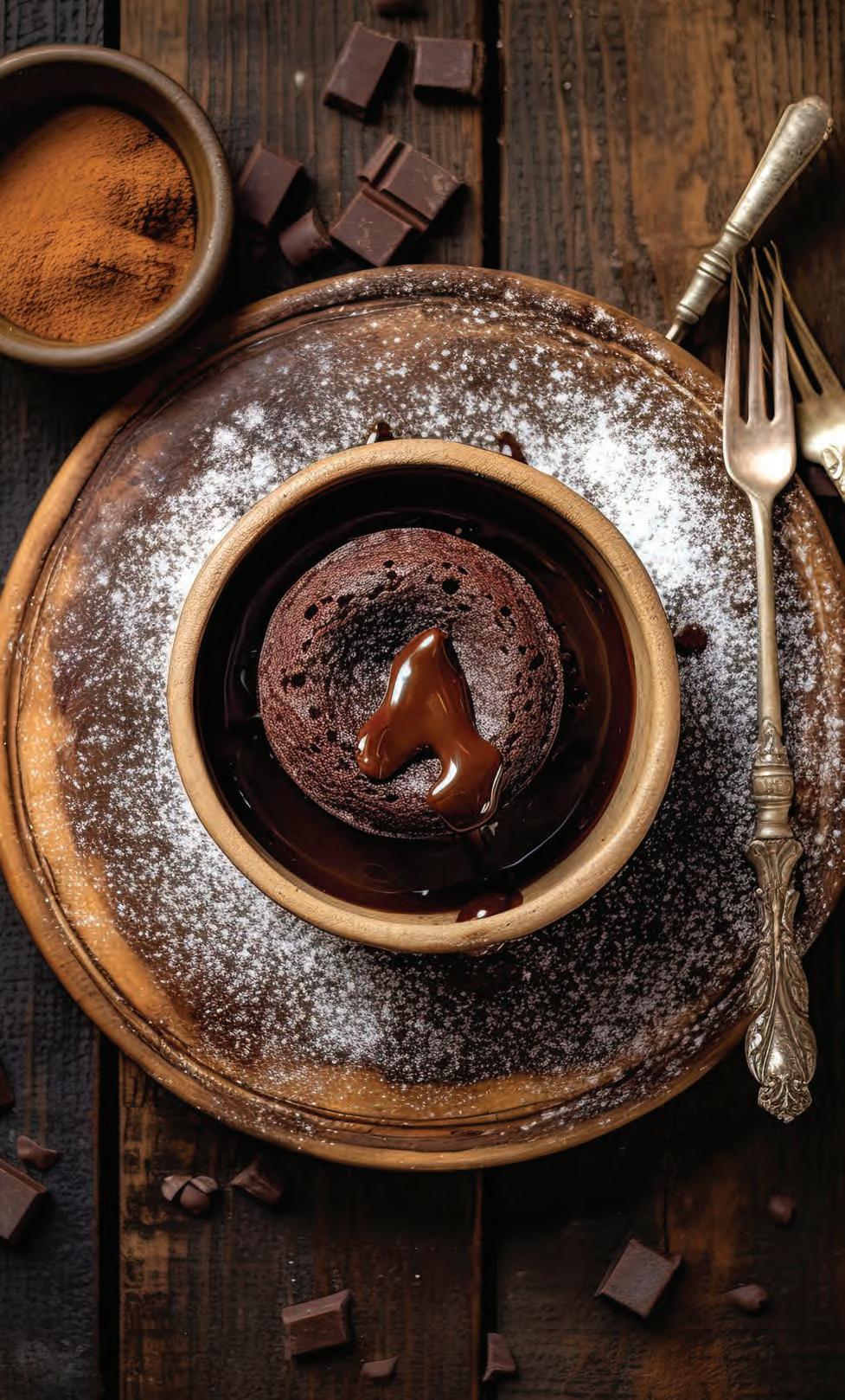 Preheat your oven to 425°F (220°C). Grease and flour (or use cocoa powder) individual ramekins or small oven-safe bowls.