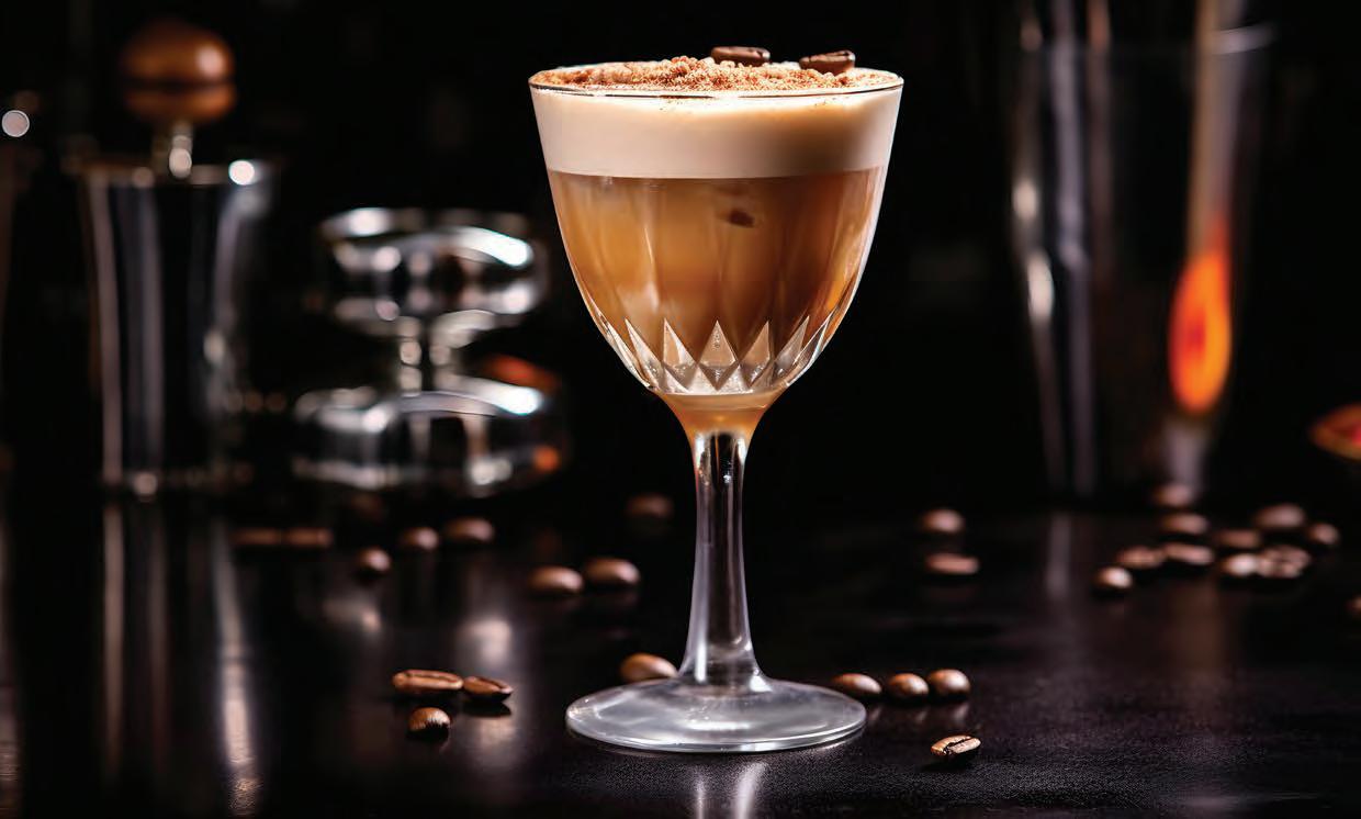 For foam, dry shake heavy cream mixed with a few drops of Kahlua. Layer it over the top, dust with a pinch of sugar and torch it from the top lightly so as not to break the glass.