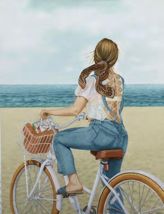 ocean beyond. In her bike’s front basket is a book titled “Anne of Green Gables”. This painting represents my being blessed that my dream came true!