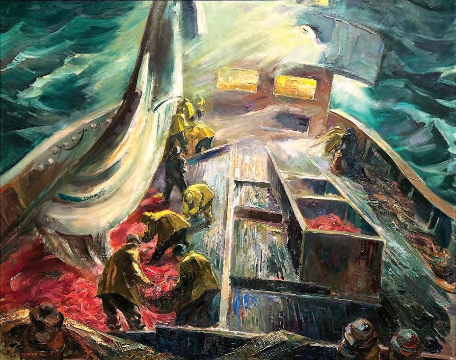 George Pepper, Trawling on the Grand Banks, c. 1953, oil on board, Gift of the Estate of Kathleen Daly, 1994. CAG 94.5.16