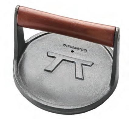 This grill press is made from heavy duty cast iron and will serve you well for many years to come. It features a wooden handle that stays cool to the touch even on the hottest grills, giving you a safe grip when you need it most.