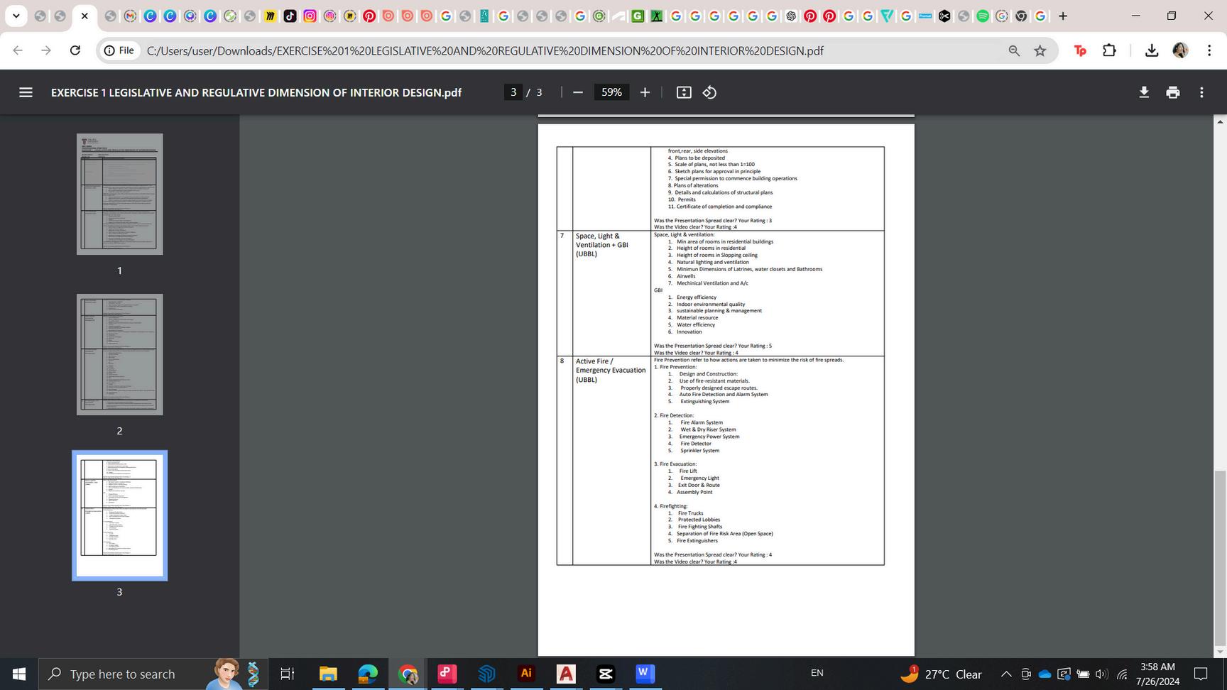 Abstract: Building designs comply with Malaysia s Uniform Building By-Law (UBBL) 1984, combining both passive and active fire protection systems for comprehensive safety measures Can UBBL guidelines be further improved to address emerging challenges and advancements in fire safety? What recommendations would you propose for improving the effectiveness of UBBL guidelines in ensuring fire safety in buildings but not limiting architectural design and innovation? We must have adequate knowledge of Fire requirements for the spaces we design. Discuss in detail why Fire Safety is important for Interior Designers, and not only Architects Discuss
