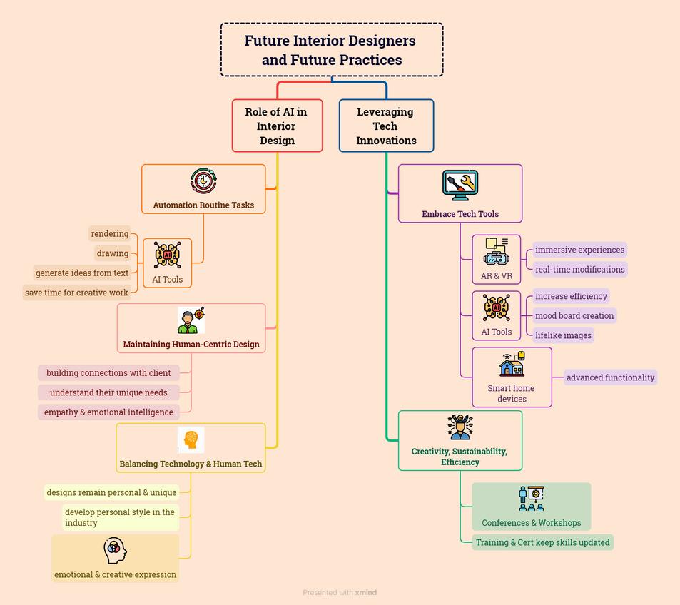 Reflecting on this module, I realize how thoroughly it has prepared me. It has not only honed my technical skills but also instilled a strong sense of professional ethics and an entrepreneurial mindset. With the knowledge and clarity of purpose I have gained, I now feel more capable of navigating the everevolving design industry. This module has been a transformative experience, giving me a deep understanding of what it takes to be a professional interior designer. Its focus on design processes, professional ethics, and entrepreneurial skills has significantly shaped my view of the industry.