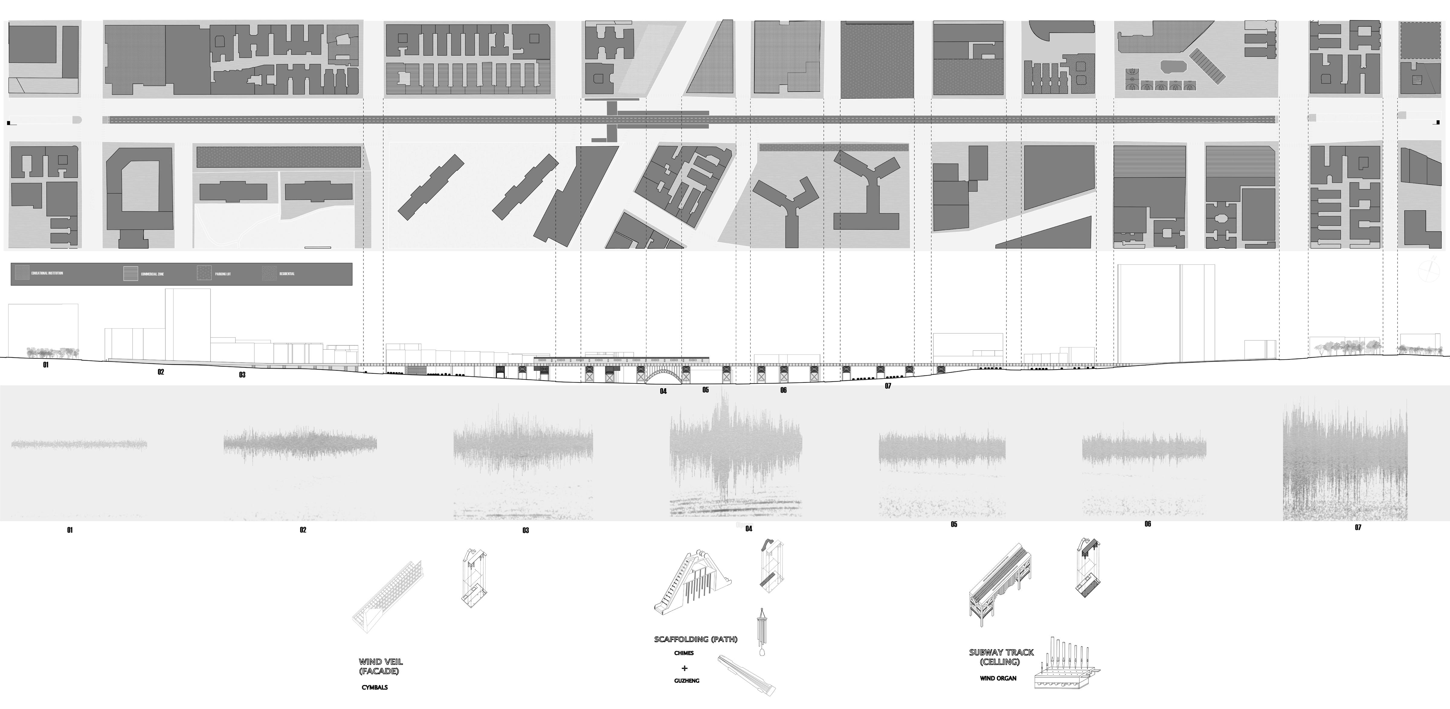The proposal culminates at the 125th Street elevated subway bridge in Harlem. Reimagined as a controlled sound park, the structure becomes both a refuge and an acoustic filter. Instead of silencing the city, it reshapes its noise—turning chaotic vibration into rhythm, and disruption into design. Here, sound becomes a tool for both expression and healing, offering a new way to inhabit, understand, and repair the urban environment.