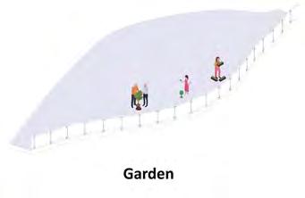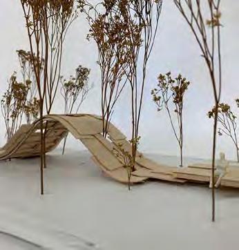 A lightweight bridge spans across the tracks, serving as both a pedestrian connection and an “auditory stage” where one can experience the sound waves of passing trains.
