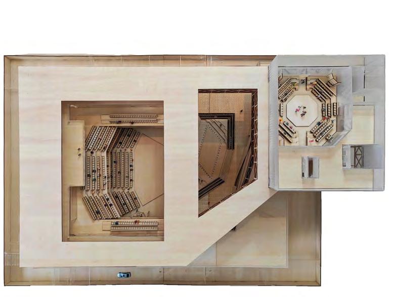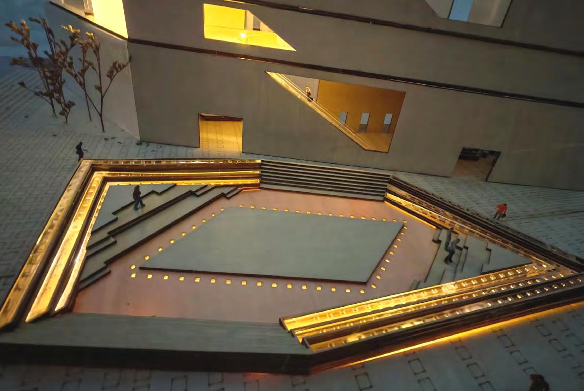 Positive space is defined by highly controlled environments—including two theaters and a gallery—where acoustics, audience relationships, and technical demands require precision. In contrast, negative space is intentionally shaped as a spatial void of equal architectural quality, accommodating public performance, gathering, civic use, and everyday life. Rather than residual space, this void operates as a flexible public field where performance extends beyond the stage.