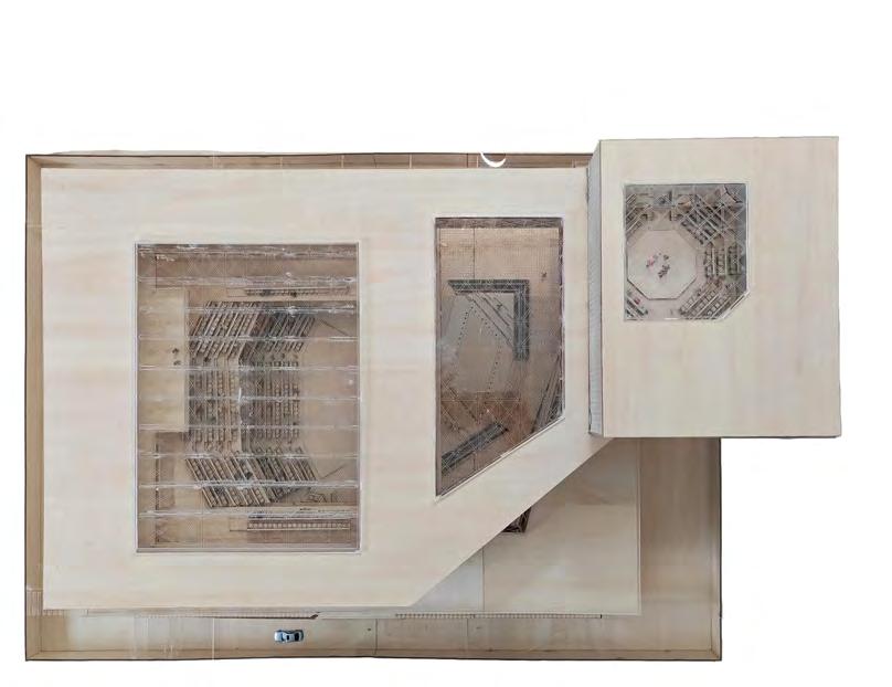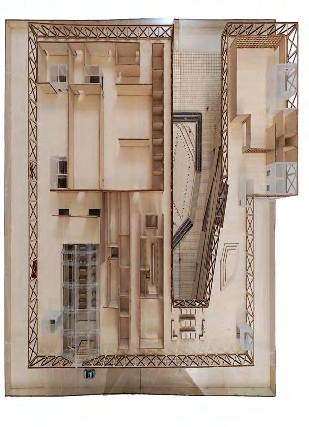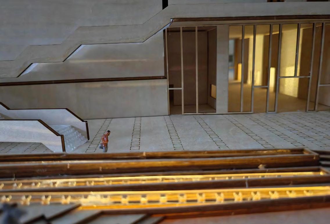 Located across from the American Museum of Natural History, this project reimagines a previous student proposal originally conceived as an extension of the Macy’s Thanksgiving Day Parade. Our team retained the central idea of a glass pavilion and deflation basement for balloon storage and display, while redesigning the scheme to better integrate with the park’s topography and public circulation. By excavating and partially submerging the building, the design preserves unobstructed park views and reuses the displaced soil to create a 46,000-square-foot green roof that functions as a public playground. I contributed comprehensively across concept development, spatial organization, environmental strategy, and technical detailing. The final proposal features a hybrid structural system combining steel, concrete, and CLT columns, optimizing material performance and visual warmth. To test construction logic and spatial proportion, our team fabricated a half-scale physical model of the key structural bay. Through this integration of environmental systems, tectonic precision, and civic programming, the project transforms a piece of parade infrastructure into a sustainable urban landscape of celebration and renewal.