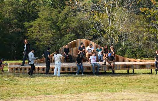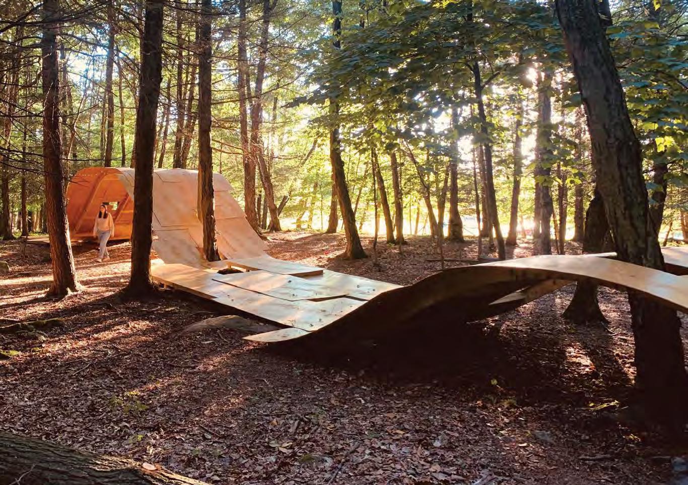 Peak-A-Boo peeks out from among the trees on the historic grounds of the 1969 Woodstock Music and Art Fair at Bethel Woods, taking shape as a continuous series of wood-laminate arches and decks that together form a pavilion and flexible performance space. The project was a collaboration between Texas Tech University student teams and i/thee, exploring architecture as a device for framing landscape, movement, and performance. I led the Grasshopper-based computational team, developing prototype geometries and conducting active bending analysis across multiple form iterations, and also participated directly in the construction and on-site installation process. The project was published on ArchDaily and Dezeen, and was nominated for ArchDaily’s Building of the Year TAwards 2022 (Installation / Temporary Architecture category).