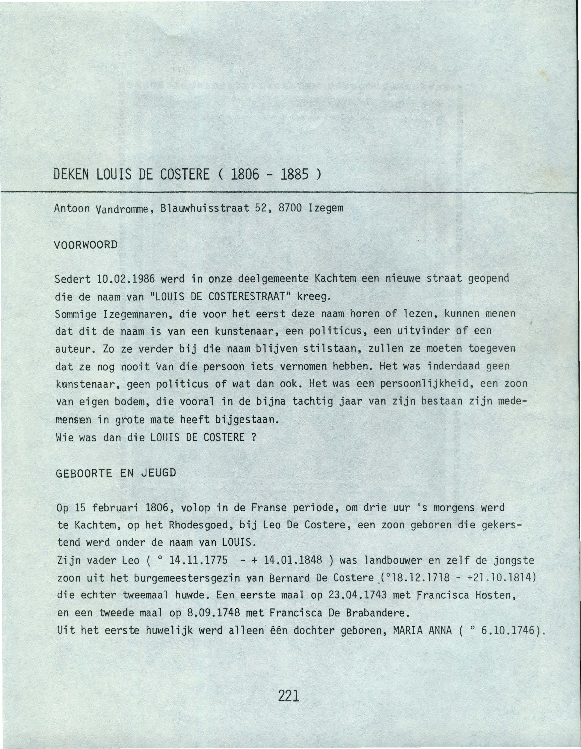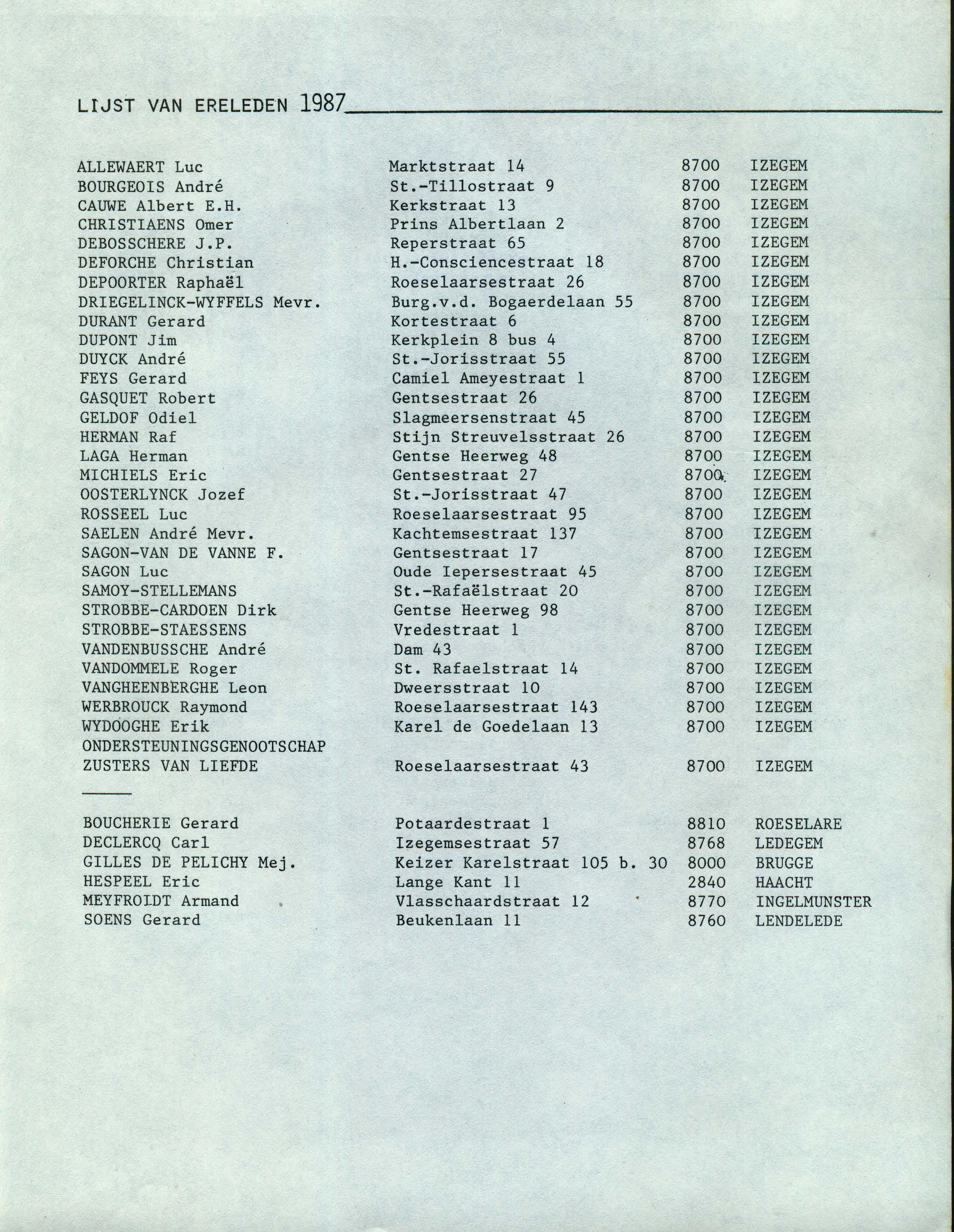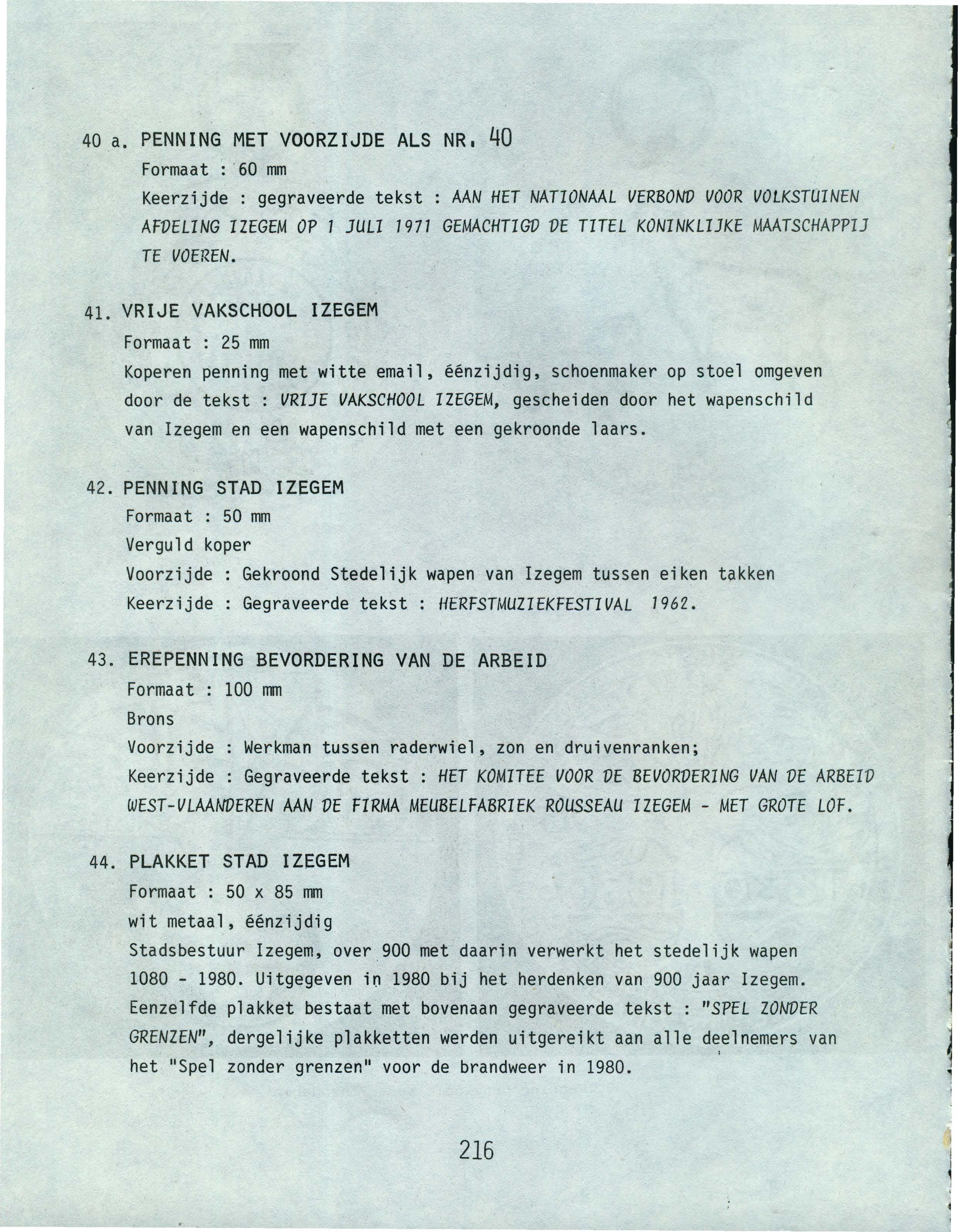 Alle oude geschriften, boeken, foto's, kaarten e.a. betreffende Izegem, Emelgem en Kachtem wor den steeds met dank aanvaa rd bij alle leden van het Bestuur of op het stadhuis , 1e verdieping , bu r ea u nr 3.