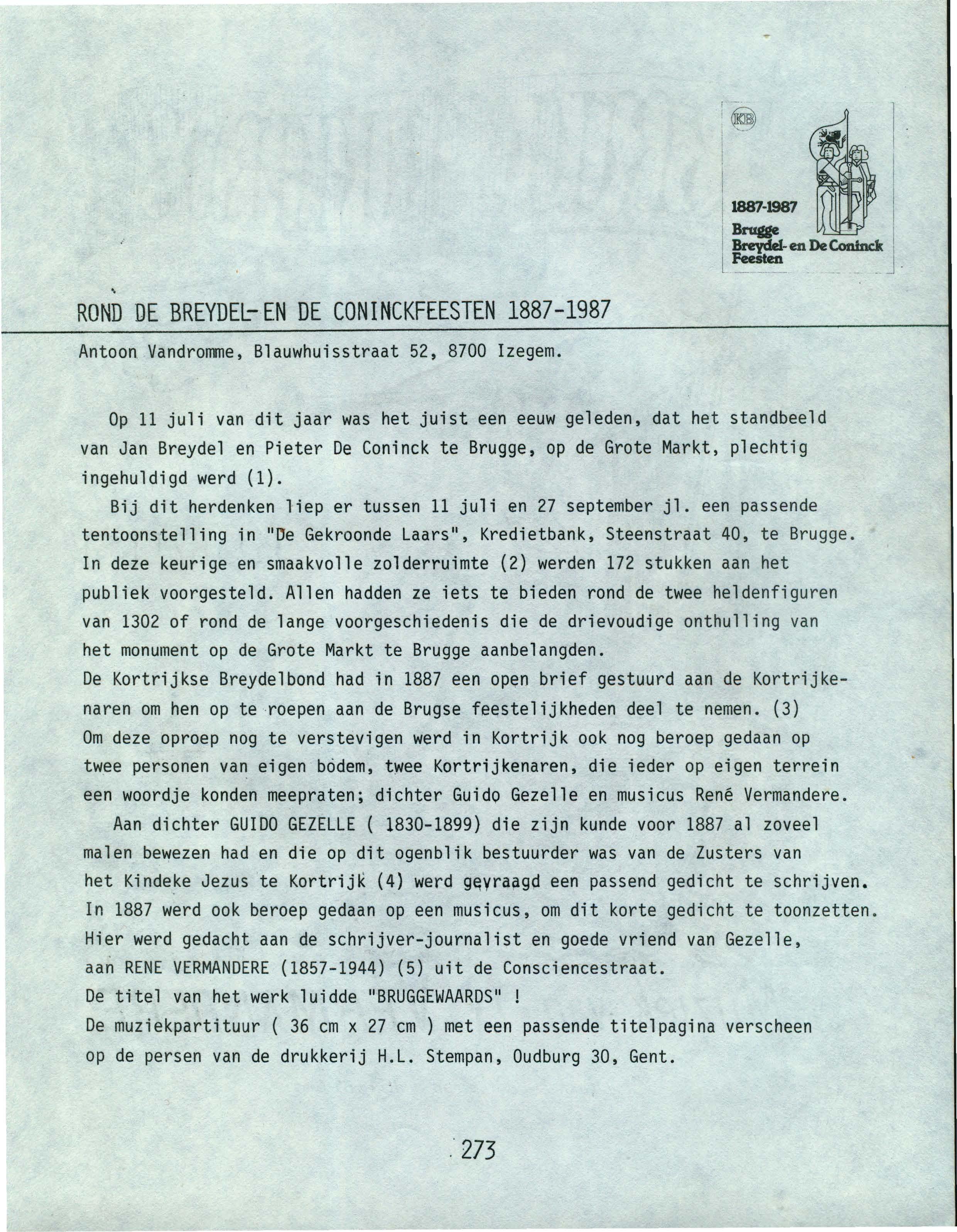 Antoon Vandromme E H Leopold SI osse en het Izegemse Slossefonds