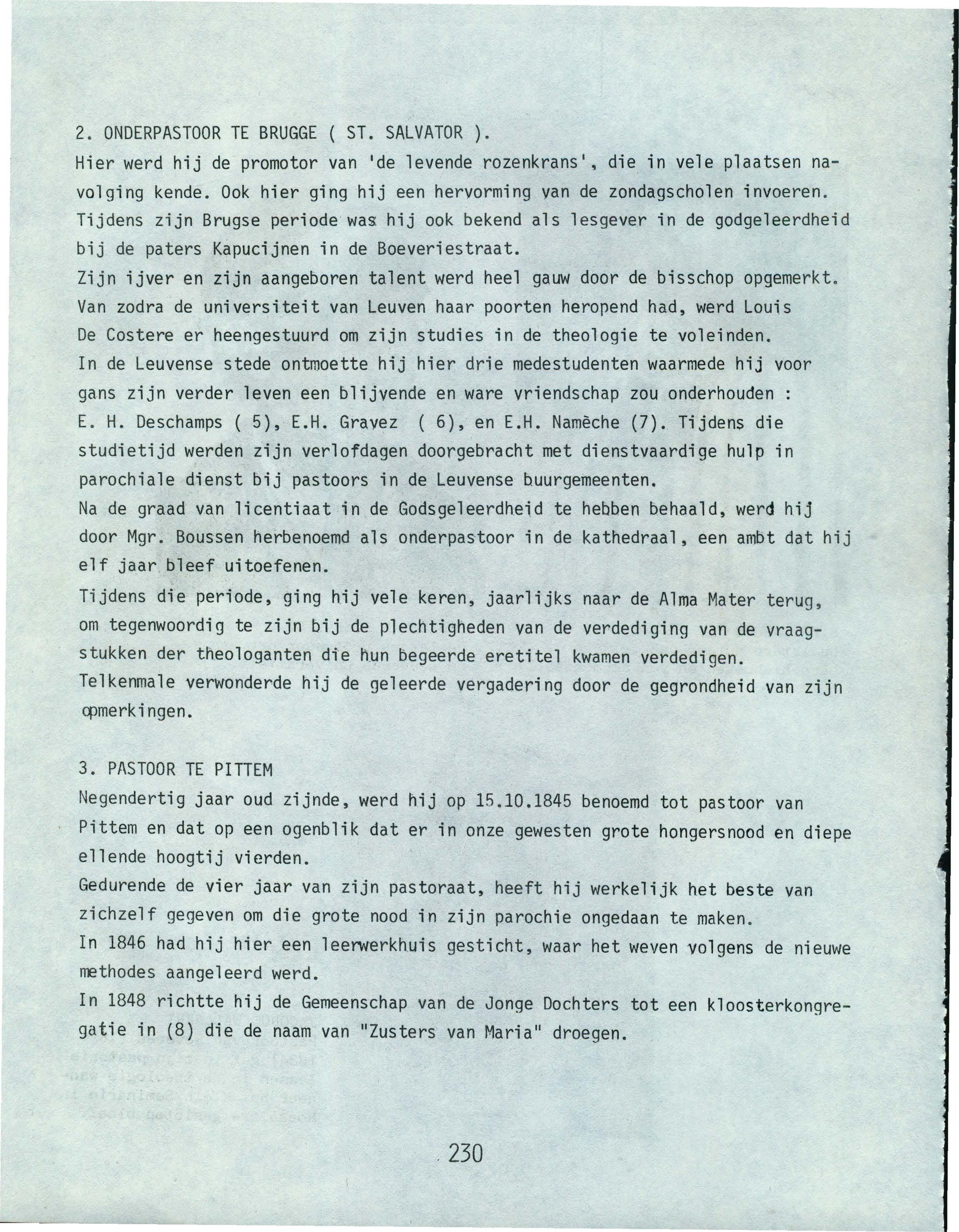 Daarmee is niet gezegd dat er geen leemten zouden zijn. Er werd op gewezen dat E.H. Etienne Louwaege, toch van 1944 tot 1974 de markante directeur van het Sint-Jozefscollege, geen enkele vermelding heeft gekregen. Als sOllJl1ige deelaspecten van Izegem al eerder werden bestudeerd, werd daar in de van Izegem, om ruimte te winnen, minder op ingegaan. De historiek van het SintJozefscollege werd in het speciale nummer 20-21 (1968 ) van Ten en R. Verholle verzorgde een biografische nota over 4.E.H. Etienne Louwaege in Ten nr. 37 (1974 ), p. 45-48. Maar deze opmerking kan slechts als verontschuldiging gelden.