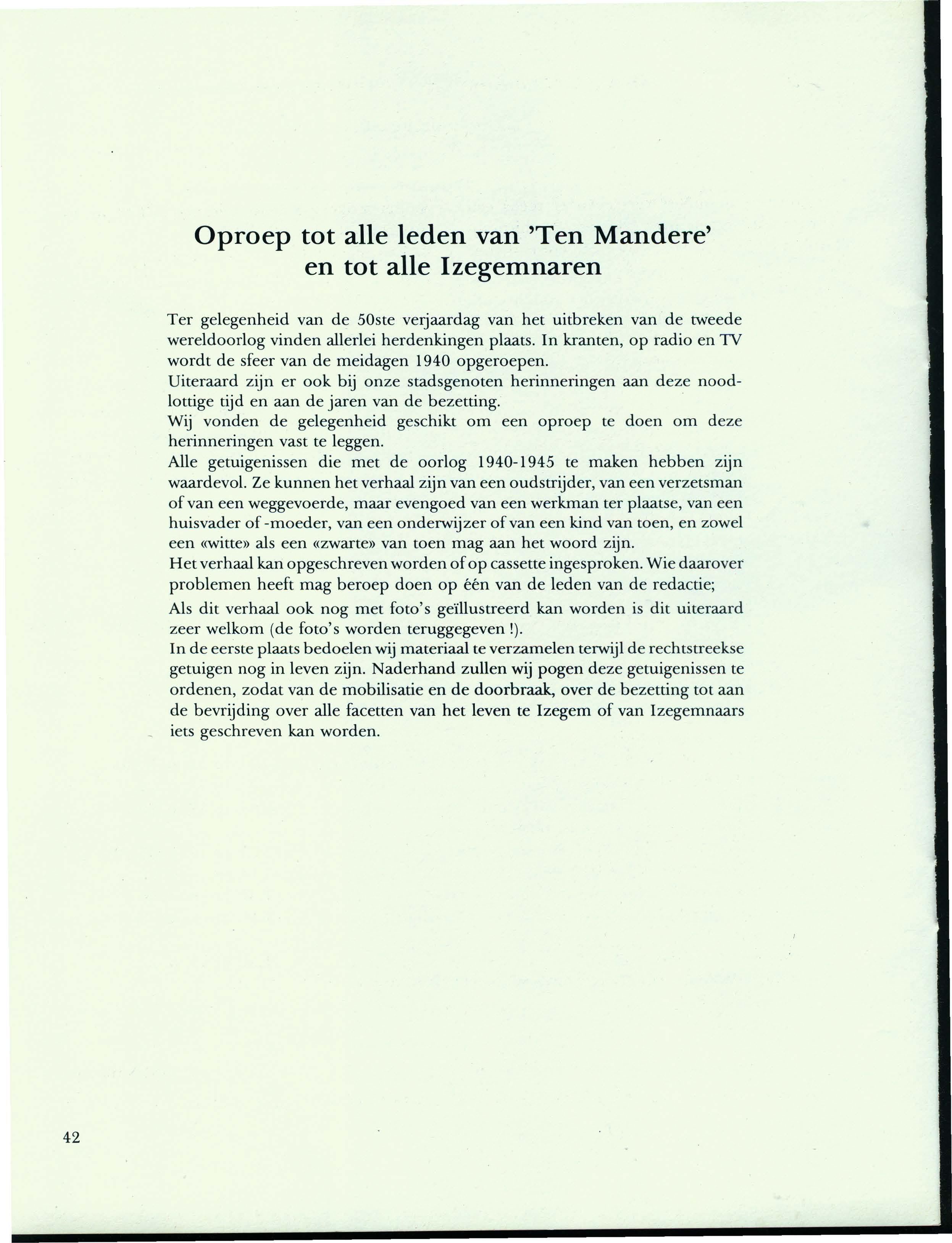 STADSBESTUUR IZEGEM HEEMK. KRING TEN MANDERE