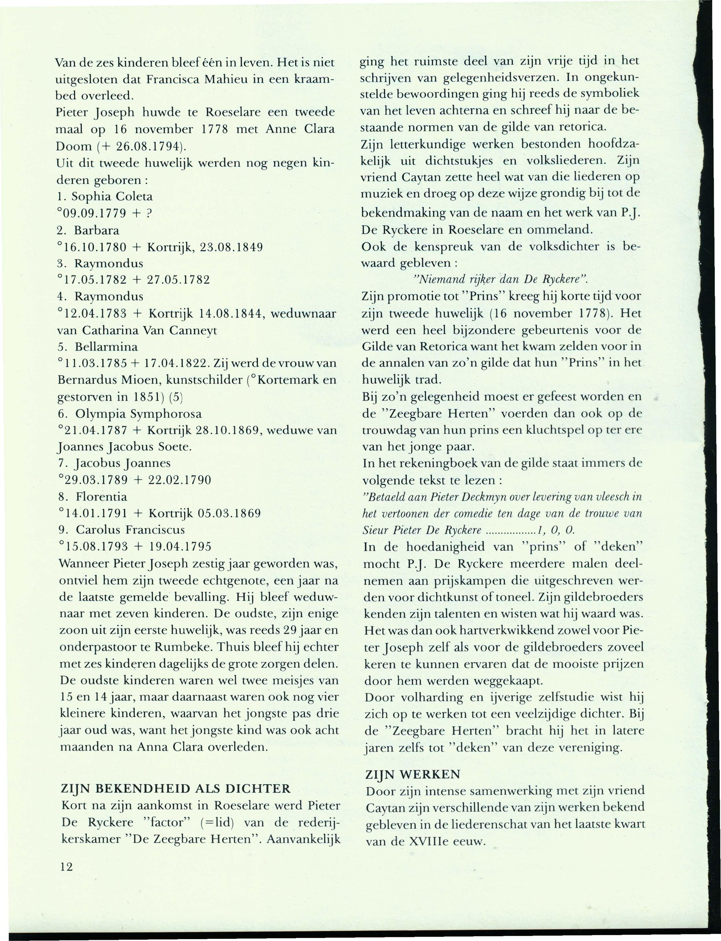 A. VANDROMME, Piet e r joseph D e R yc k e r e Pott e nbakk e r e n R e d e rijk e r
