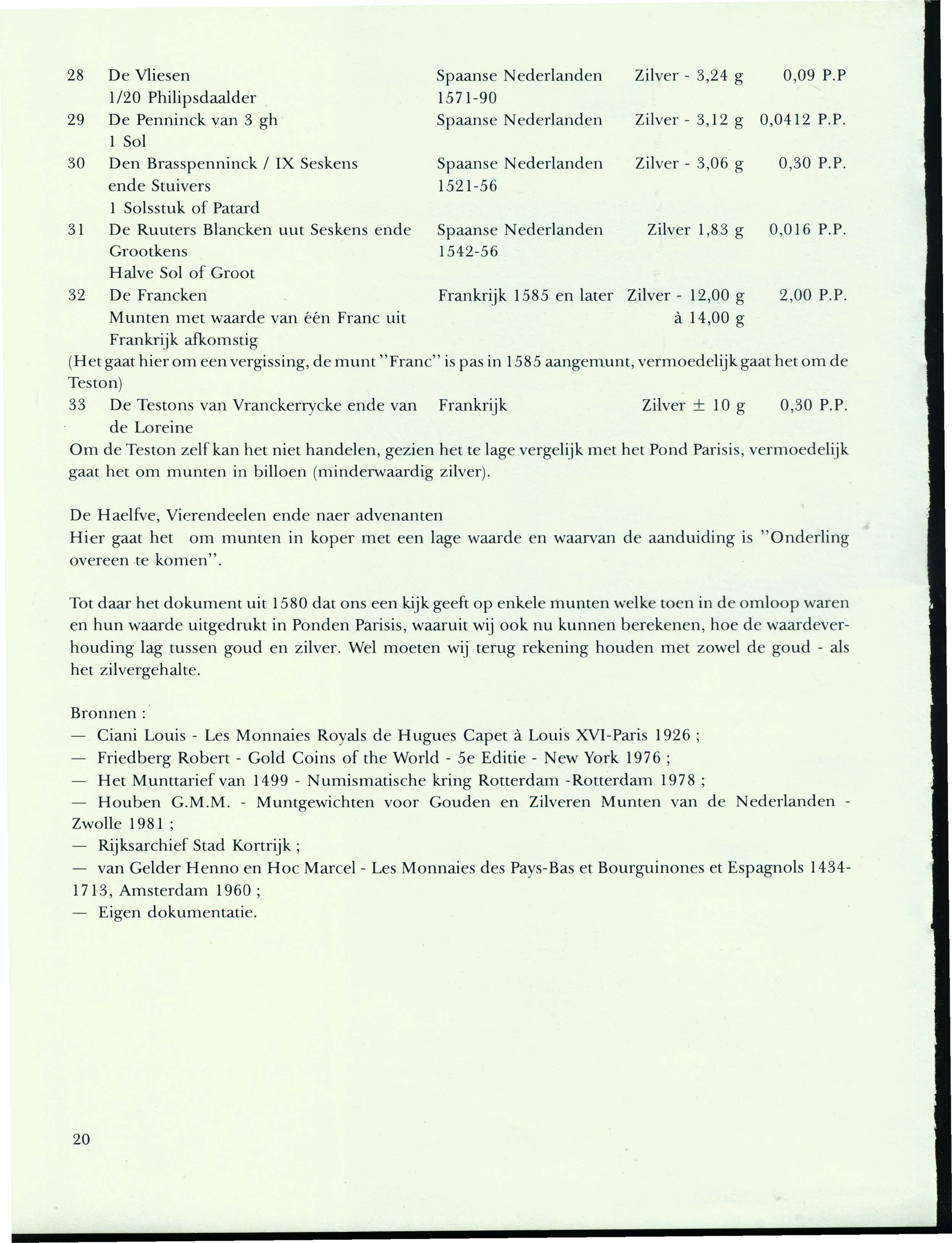 M. NUIjTTENS , Munten in v e rgel ijk tot h e t pond parisis of vlaams pond
