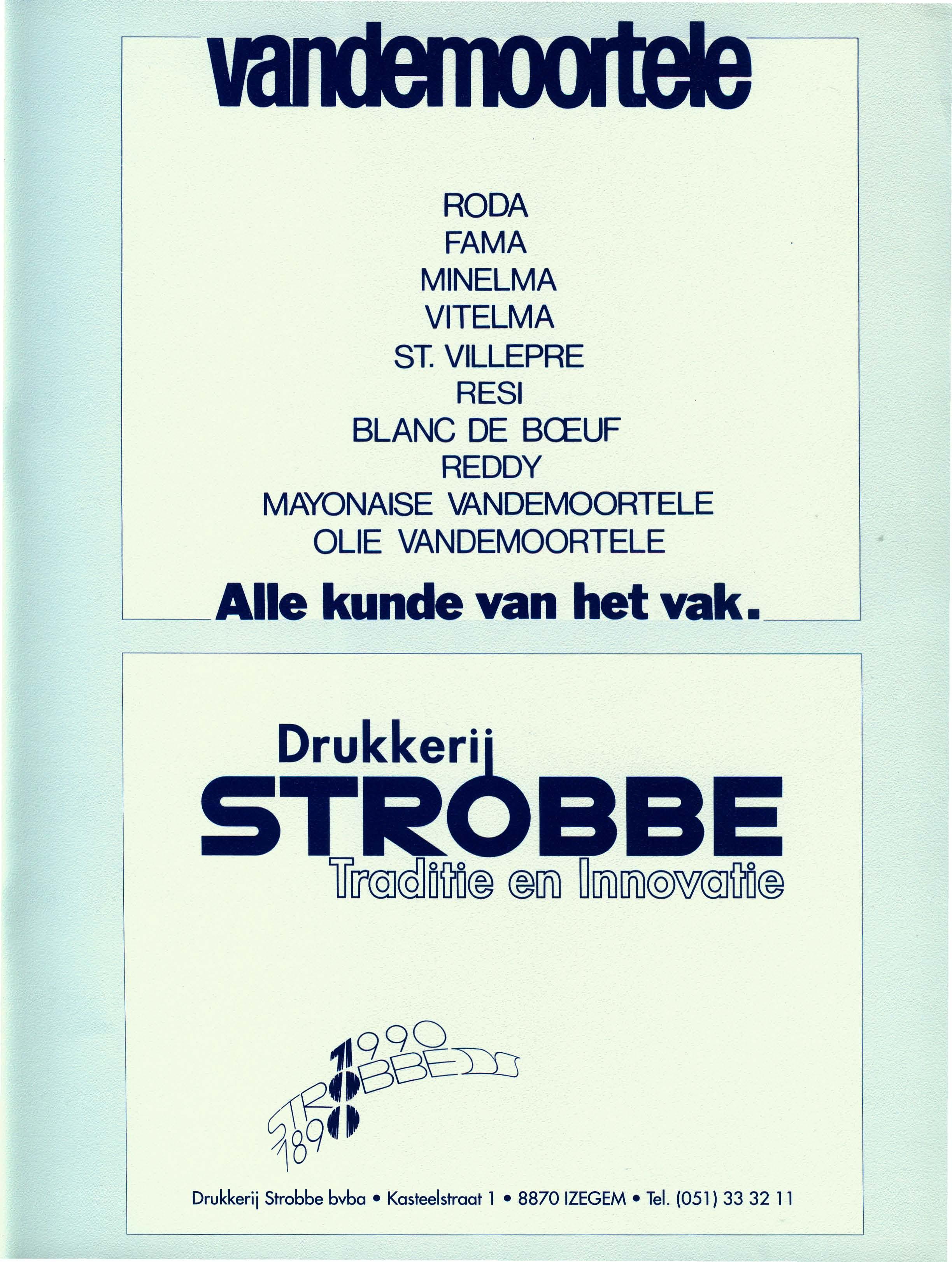 RODA FAMA MINELMA VITELMA ST VILLEPRE RESI BLANC DE BCEUF REDDY MAYONAISE VANDEMOORTELE OLIE VANDEMOORTELE ,--- Alle kunde van het vak. _-----' Orukkeri· ST BBE VI oûTI® ®[ft) Drukkerij Strobbe bvba • Kasteelstraat 1 • 8870 IZEGEM • Tel. (051) 33 32 11