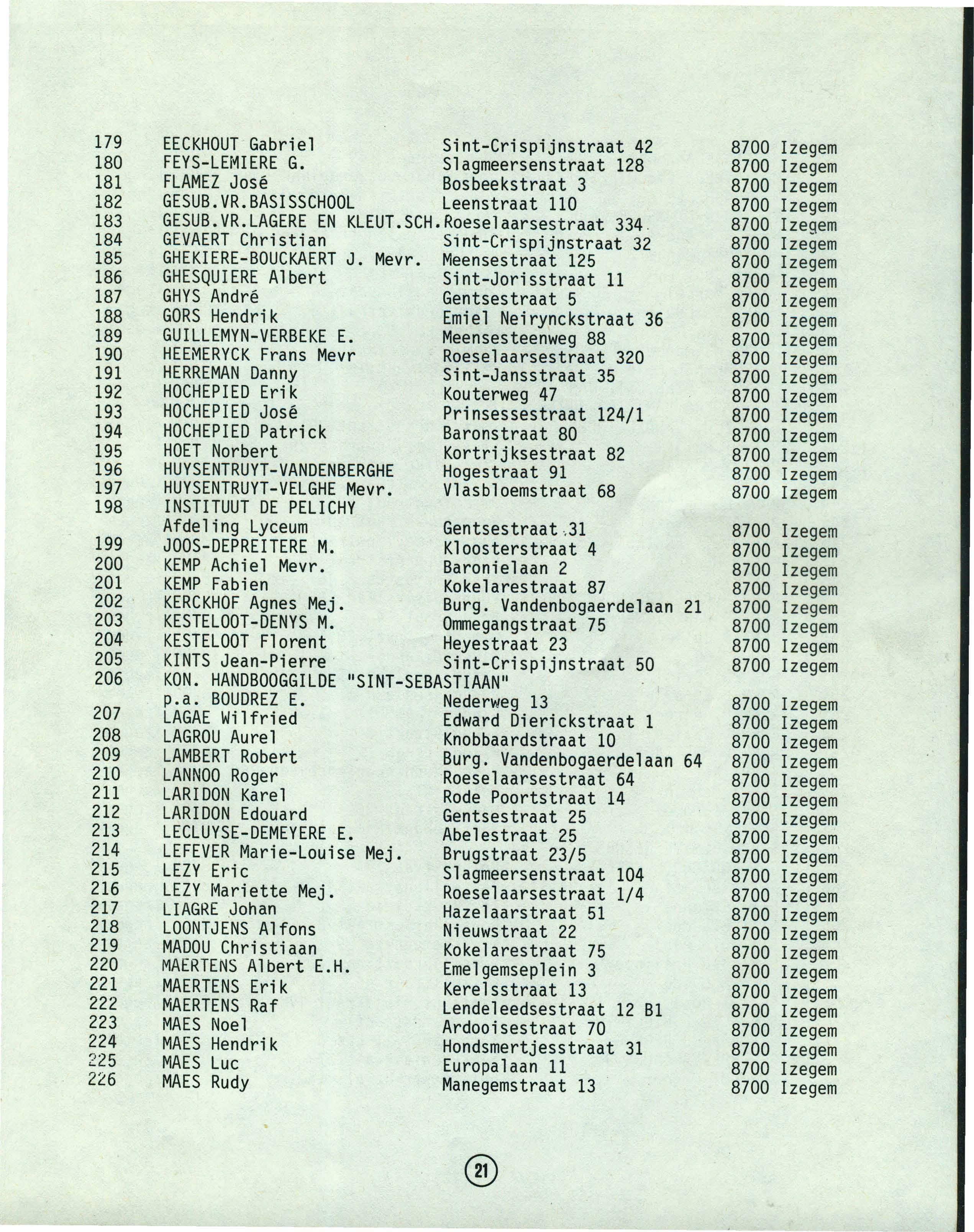 WERBROUCK Ti 11 0 Mgr. Bouckaertstraat 34 8700 Izegem 366 WILLAERT Ju1es Heyestraat 4 8700 Izegem 367