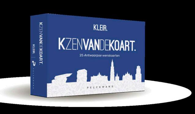 K ZEN VAN DEKOART. bevat 25 wenskaarten mét envelop, allemaal voorzien van een prachtige uitspraak in de schoonste taal: het dialect van ’t Stad. Samengesteld door Nick Daelemans en Mathias Vertessen, de paljaskes van KLEIR., die hun liefde voor Antwerpen bezingen met originele sweaters en T-shirts met typisch Antwaarpse uitspraken als K EM DEUST., ALLOKES. en K DACHT ETNI. De perfecte wenskaarten voor alle apsjaars en masjoefels.