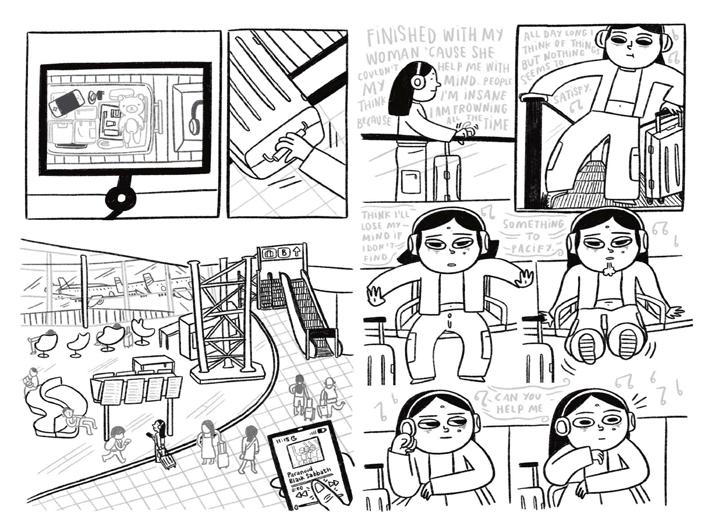 Nina Aerts werkt het liefst analoog: papier, potlood, gomsel, snippers en verfvlekken sieren haar tekentafel — en meestal ook haar vingers en kleren. Haar illustraties tonen wie ze is: een vrolijke melanchool, een rationele dromer en een weloverwogen liefhebber van absurditeit.