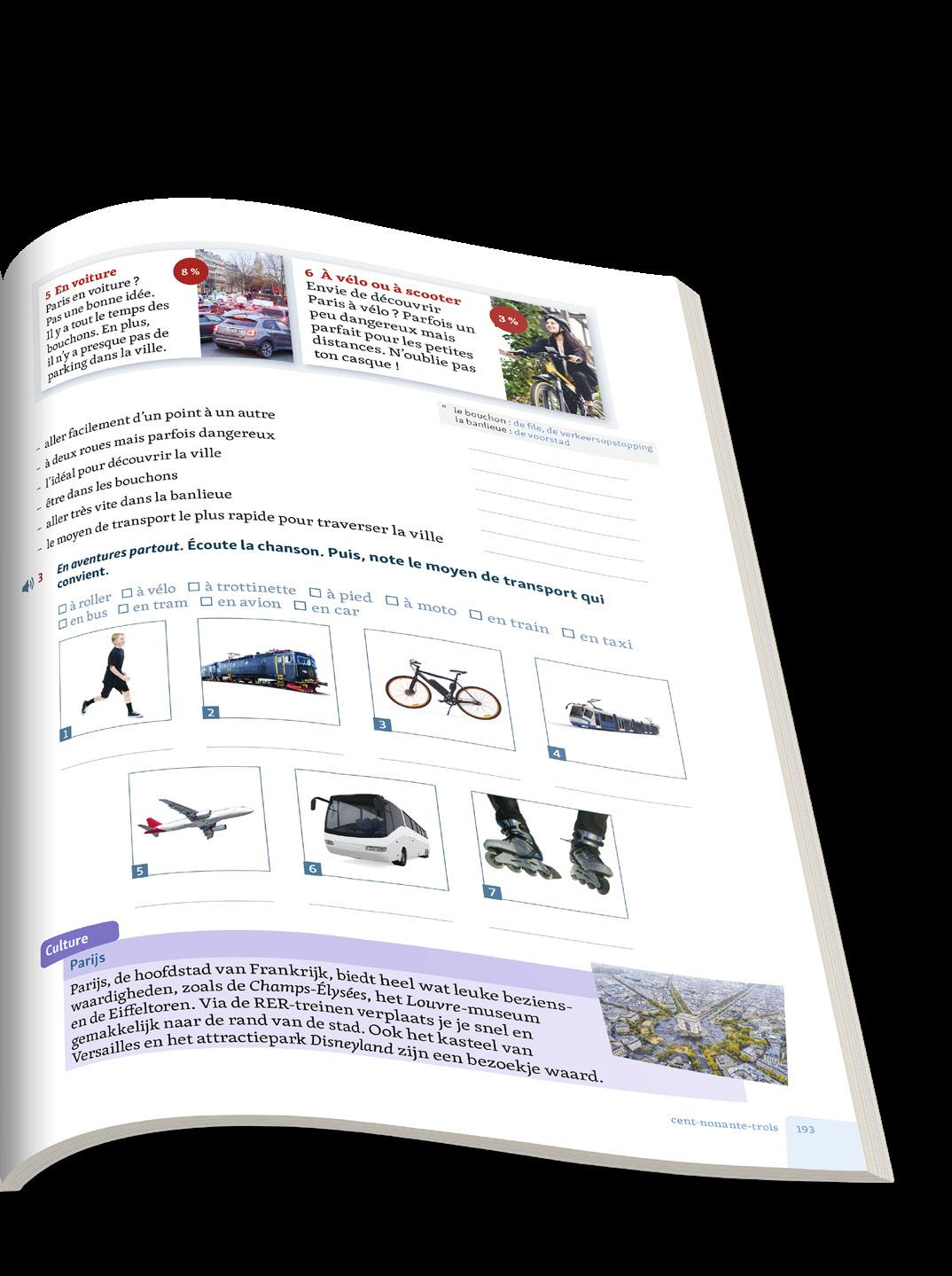Éclat français en Univers français geven leerlingen de kans om zelf met de lesmethode aan de slag te gaan via: – papieren en digitale materialen om het leren te ondersteunen, zoals instructievideo’s, mini- en modeldialogen, woordkaartjes en een woordentrainer – papieren en digitale materialen voor remediëring en verdieping of uitbreiding – een portfolio met leertips en ruimte voor reflectie.