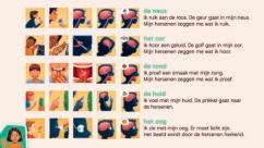 Allereerst leren: de leerlingen leren de lichaamsdelen benoemen en aanduiden op hun eigen lichaam, alsook op een tekening.