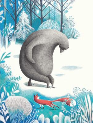 Beer doet wat Vos zegt: hij vist met zijn staart. De staart van Beer vriest vast in het ijs.