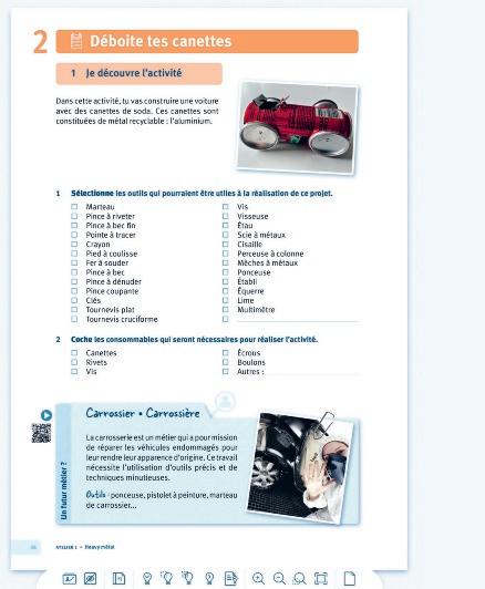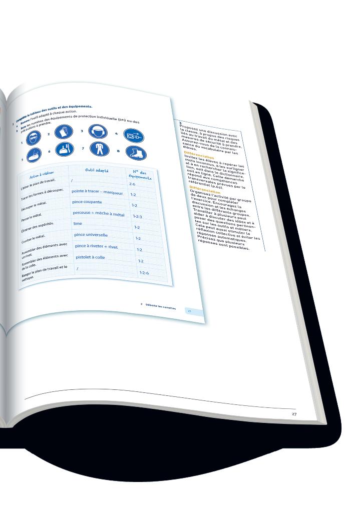 1 Je découvre l’activité permet à l’élève de se familiariser avec les gestes de sécurité et les outils pour travailler de manière sécurisée.