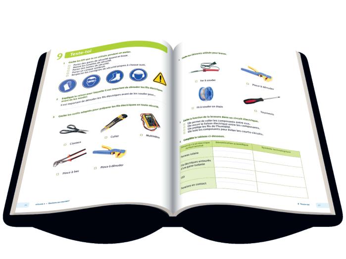 À la fin de chaque atelier, la rubrique Teste-toi reprend des questions de savoir, de savoir-faire et de compétence. L’élève peut s’autoévaluer facilement et travailler en autonomie.
