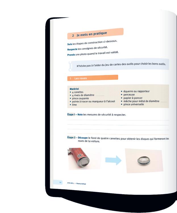 2 Je mets en pratique accompagne l’élève dans la réalisation du projet grâce à un pas-à-pas illustré de photos.