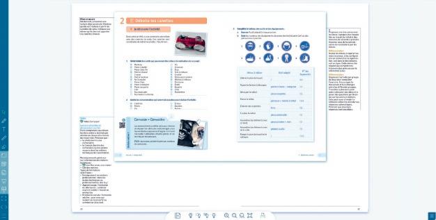 En plus du matériel de l’élève, vous disposez d’autres documents et outils : – une planification de l’année basée sur les attendus du référentiel, – le guide du professeur en version numérique, – des banques de questions modifiables par thème, – le suivi des élèves pour les exercices et les Teste-toi numériques, – du matériel supplémentaire, – toute une série d’outils pour annoter, marquer ou ajouter des documents. – la possibilité de partager les solutions avec les élèves.