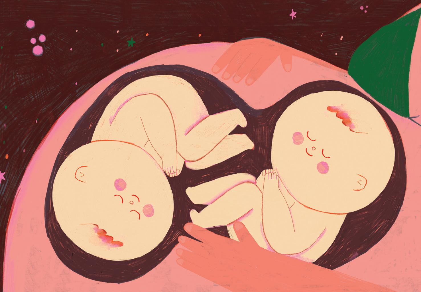 Een tweeling, dat zijn jij en ik, van het begin samen in een buik zo dik.