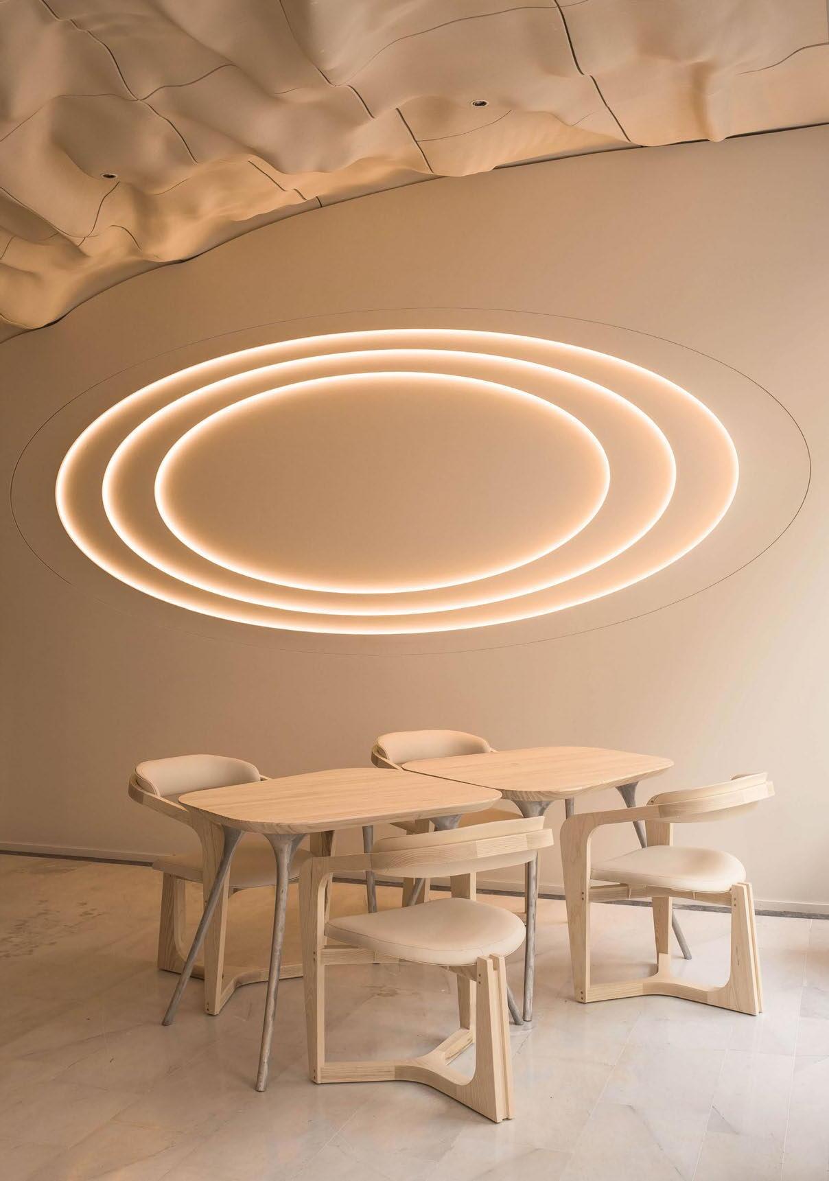 External Reference firma el restaurante CAAA by Pietro Catalano en Lucerna. Se apuesta por un espacio inspirado en los Alpes, con un techo impreso en 3D que evoca la nieve, iluminación envolvente y materiales ecológicos que transforman la experiencia culinaria.