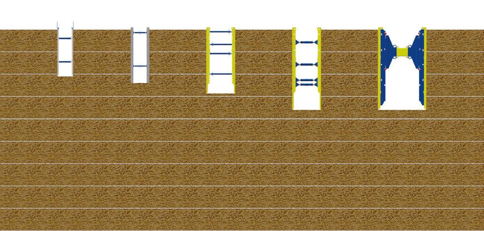 con guías sobrepuestas hasta 9.00 m con Tablestacas Kanalas KD6/8