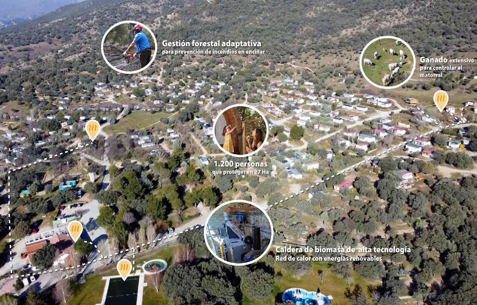 nistra energía térmica renovable a todo el camping mediante una red de tuberías de más de un kilómetro de longitud. La selección de los árboles que deben conservarse y los que hay que podar es realizada anualmente por los Agentes Forestales y la Consejería de Medio Ambiente de la Comunidad de Madrid. En palabras de Antonio Gonzalo, CEO de Monte Holiday e ingeniero técnico forestal, «el proyecto se apoya en tres conceptos básicos: gestión forestal sostenible y adaptativa al cambio climático; generación de energía renovable con tecnología de última generación y control del biocombustible en el encinar mediante ganadería extensiva». Durante la presentación oficial, todos los ponentes coincidieron en la misma idea, esta innovadora iniciativa es extrapolable a otros lugares, no sólo campings similares a Monte Holiday o entornos rurales, sino incluso determinados entornos urbanos.