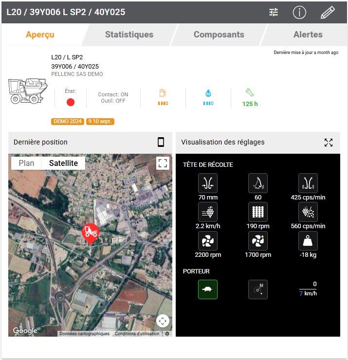 • la localisation des machines, leur niveau de carburant et Ad Blue,