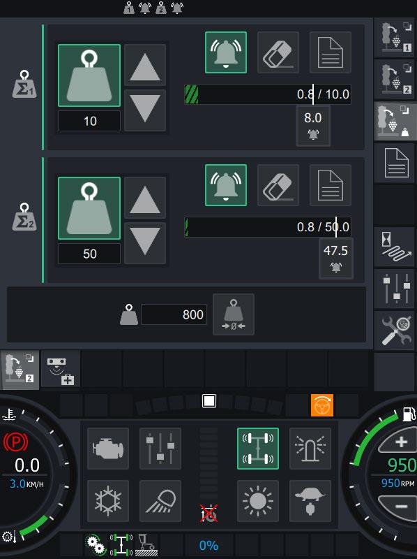 Grâce à la pesée en temps réel et un système d’alertes intégré, le chauffeur est guidé avec précision pour respecter les objectifs de récolte.