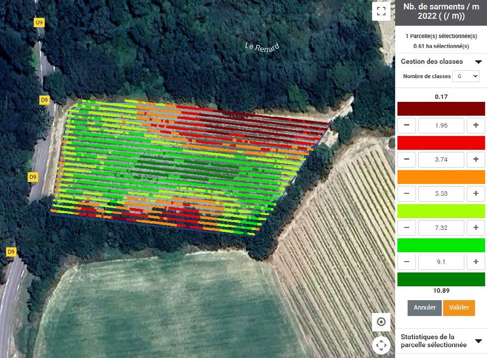 • Les cartographies sont générées automatiquement sur PELLENC CONNECT, avec une résolution précise à l’échelle de chaque plante.