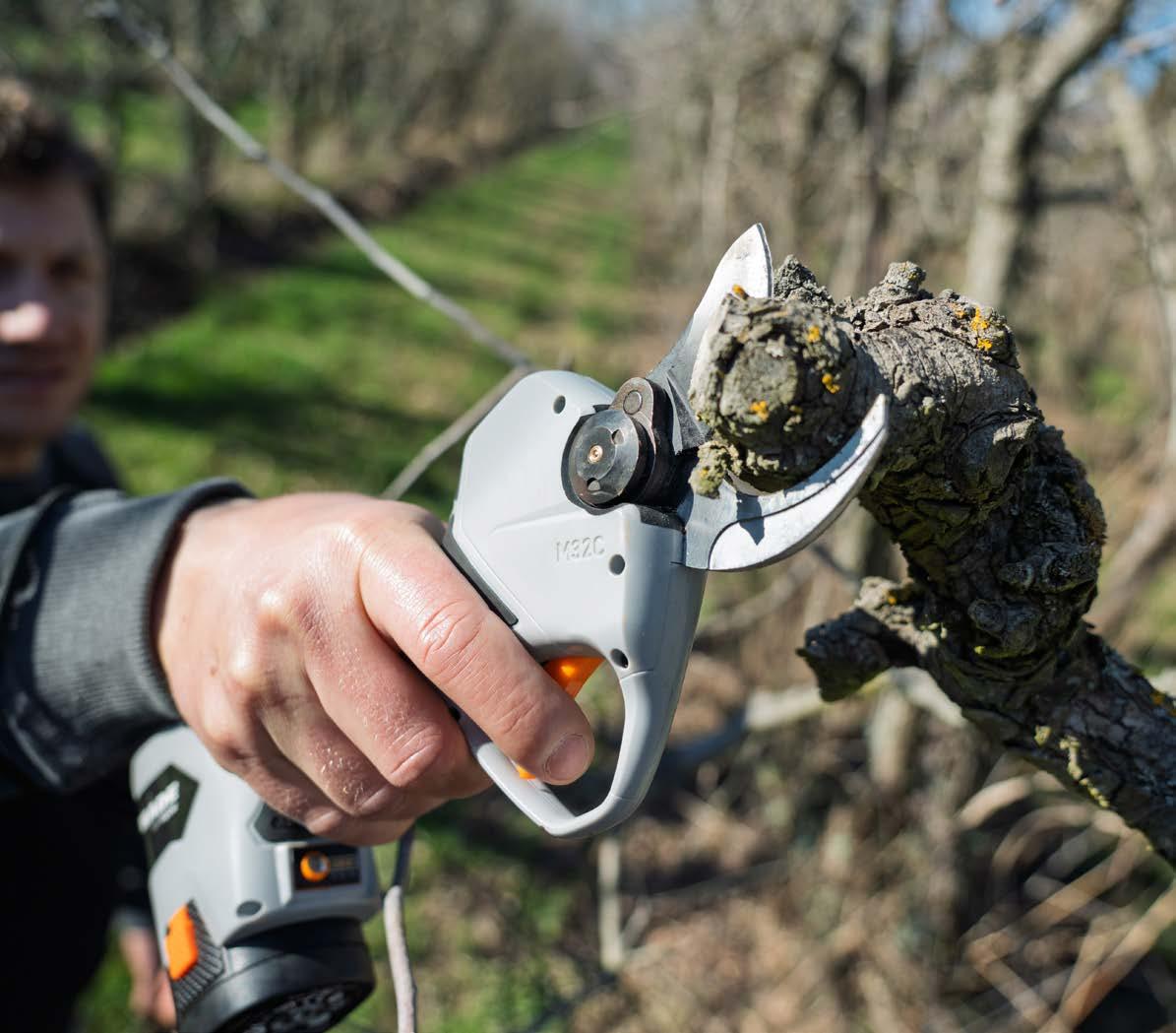 Léger, simple à prendre en main, le M32C est l’outil idéal pour les travaux de taille en verger. Sa batterie embarquée, son autonomie jusqu’à 4 heures par batterie et sa capacité de coupe de 32 mm offrent une liberté totale de mouvement et une efficacité remarquable.