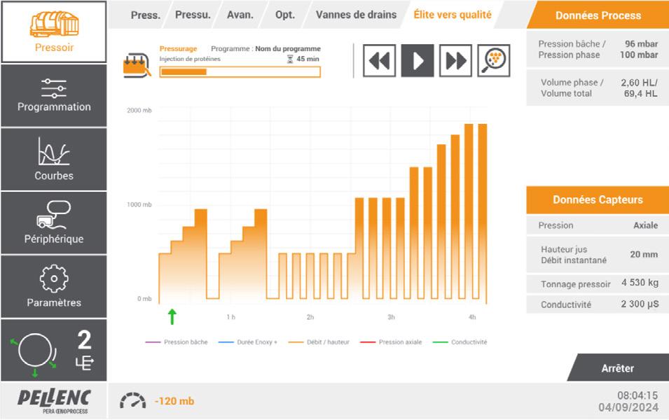 • Personalizzazione dei cicli di pressatura in base alle esigenze della cantina (logistica, qualità, ecc.)