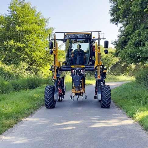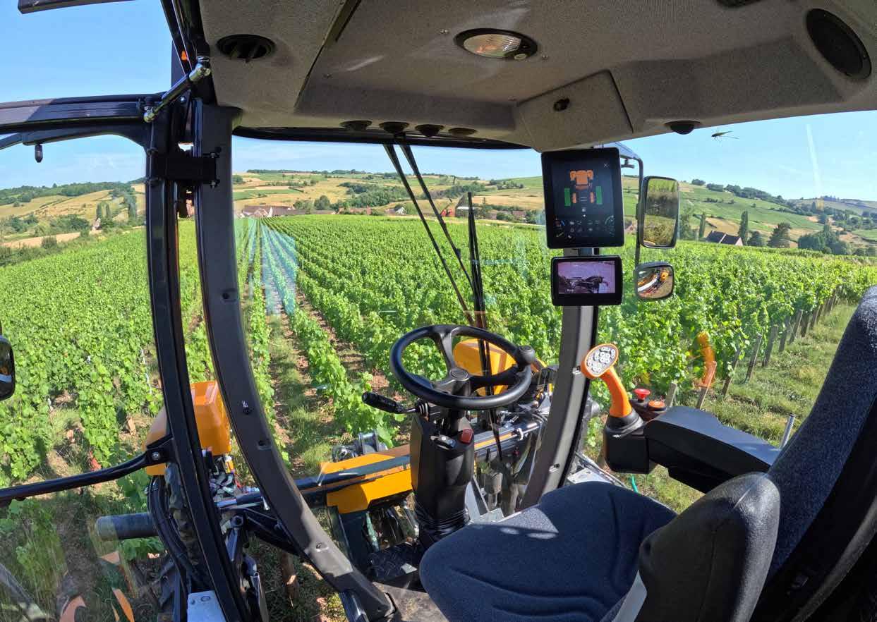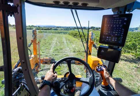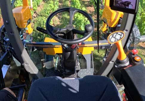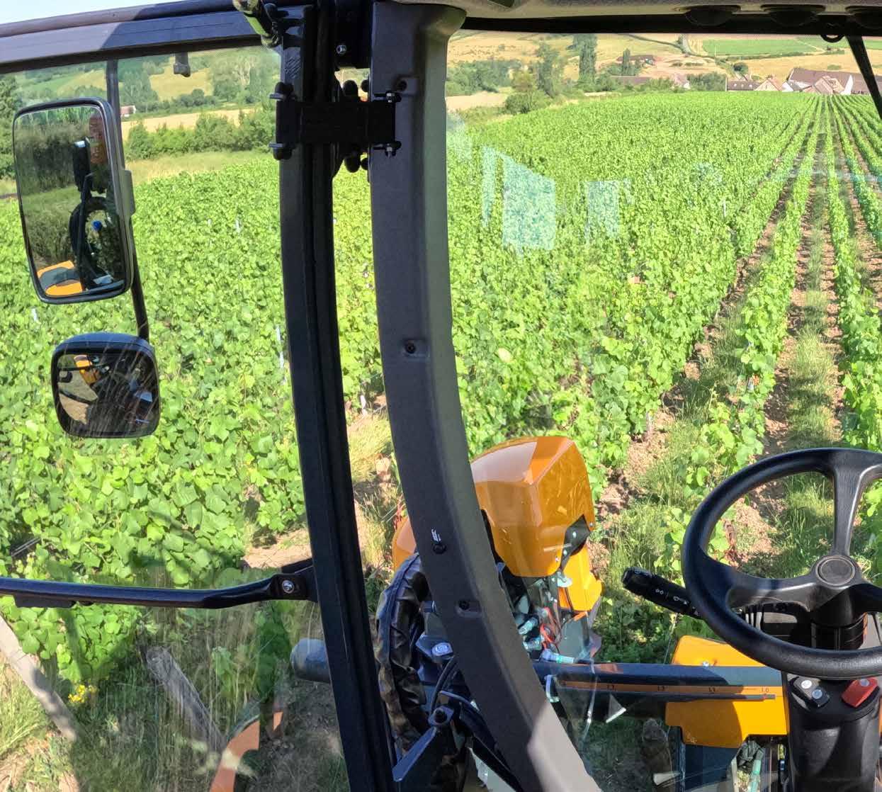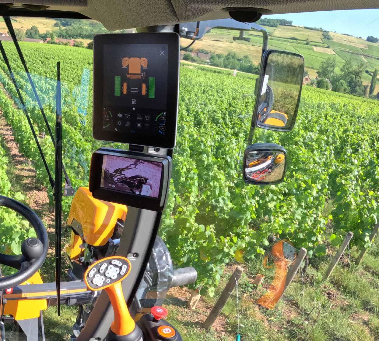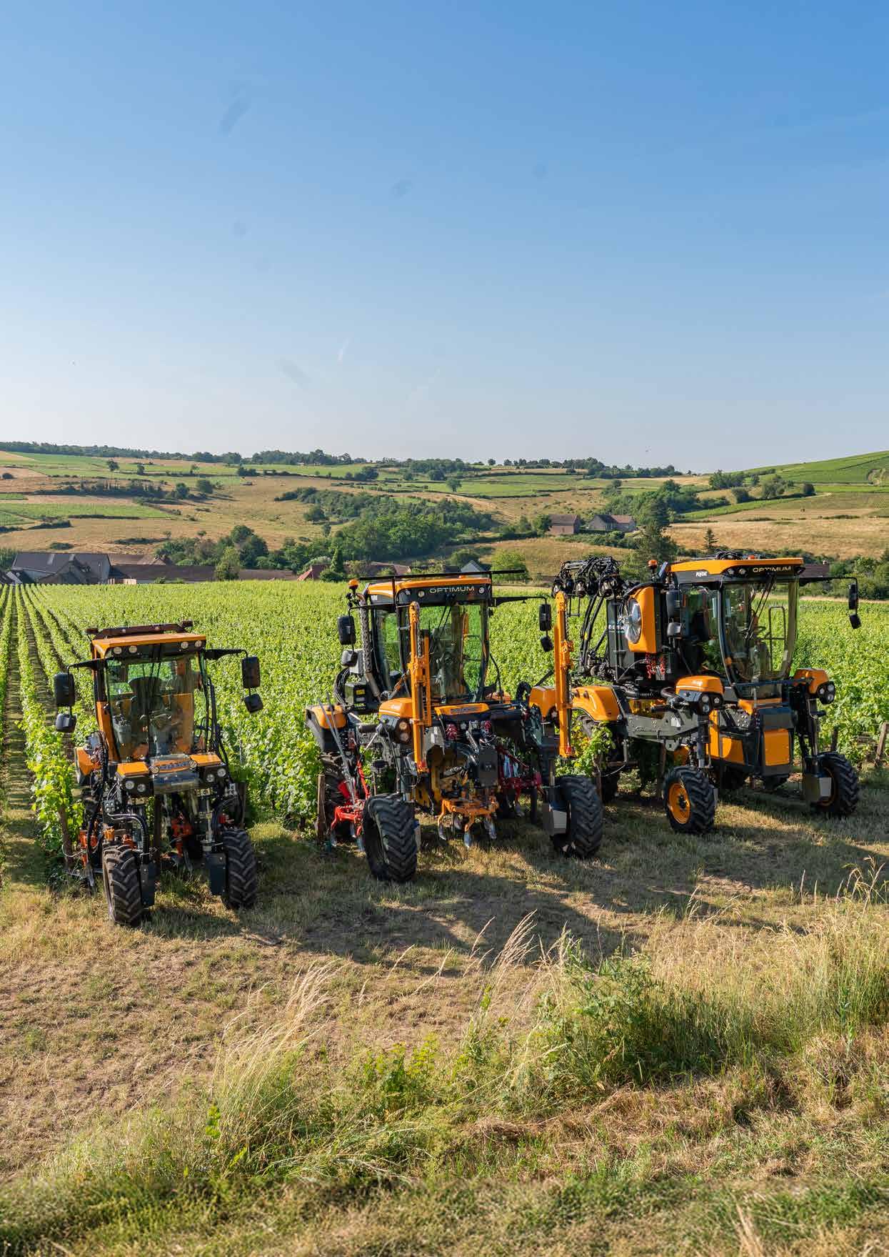 offre un pilotage souple et précis. Grâce à son empattement court, sa voie variable hydraulique et sa capacité à travailler en double ou triple rang, il s’adapte à tous les profils de parcelles, même les plus pentues.