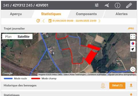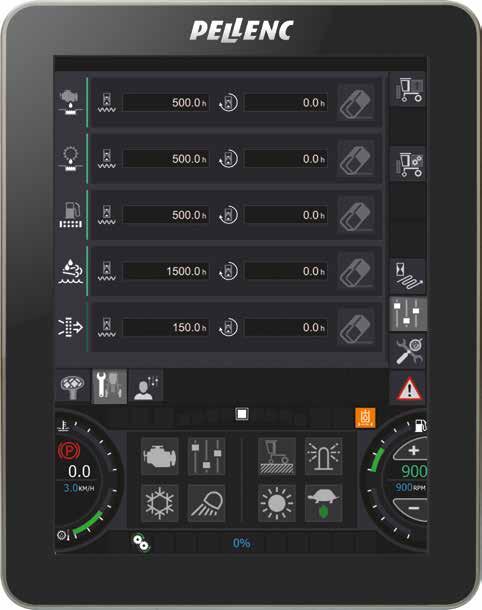 Vous pouvez anticiper l’entretien et les révisions pour garantir une productivité maximale tout au long de l’année, particulièrement pendant la récolte. Le suivi du travail en période intensive est également simplifié grâce à l’accès en temps réel aux réglages de la machine et au suivi du travail effectué, etc. Lorsque le travail est terminé, les statistiques telles que le nombre d’heures, la consommation de carburant ou le débit de chantier sont disponibles depuis l’onglet dédié sur la plateforme PELLENC CONNECT.