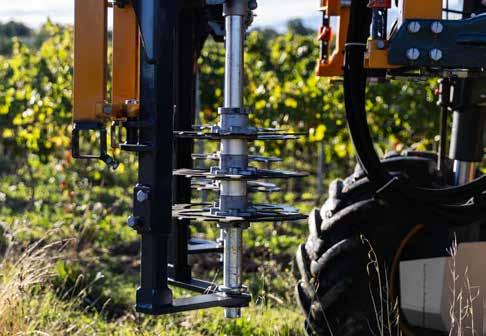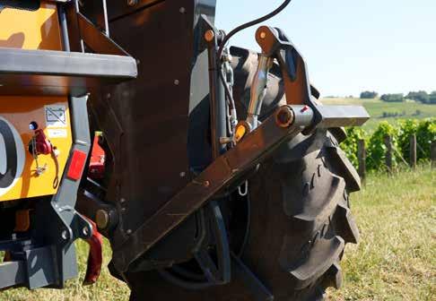 • Largeur d’inter-rang adaptable de 0,9 à 1,5 m, pour un passage facile dans toutes les configurations de vignes étroites.