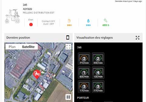 Avec l’option télémétrie sur OPTIMUM 245, suivez votre parc matériel en temps réel grâce aux données récupérées sur l’enjambeur et l’outil attelé. Visualisez à distance sur tablette, PC ou smartphone :