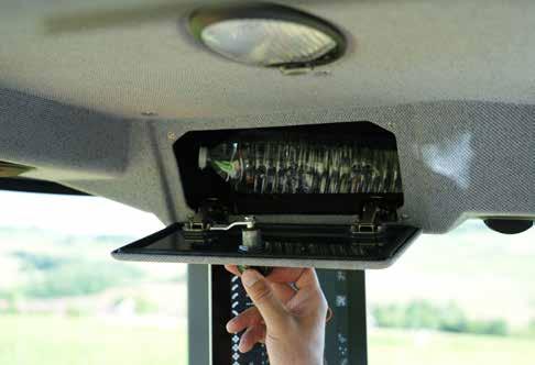 • Le filtre à air de la cabine et le filtre à charbon actif sont situés à proximité de la porte, vous les atteignez facilement depuis la plateforme d’accès à la cabine. Le système d’ouverture de la grille est rapide et sans outil.